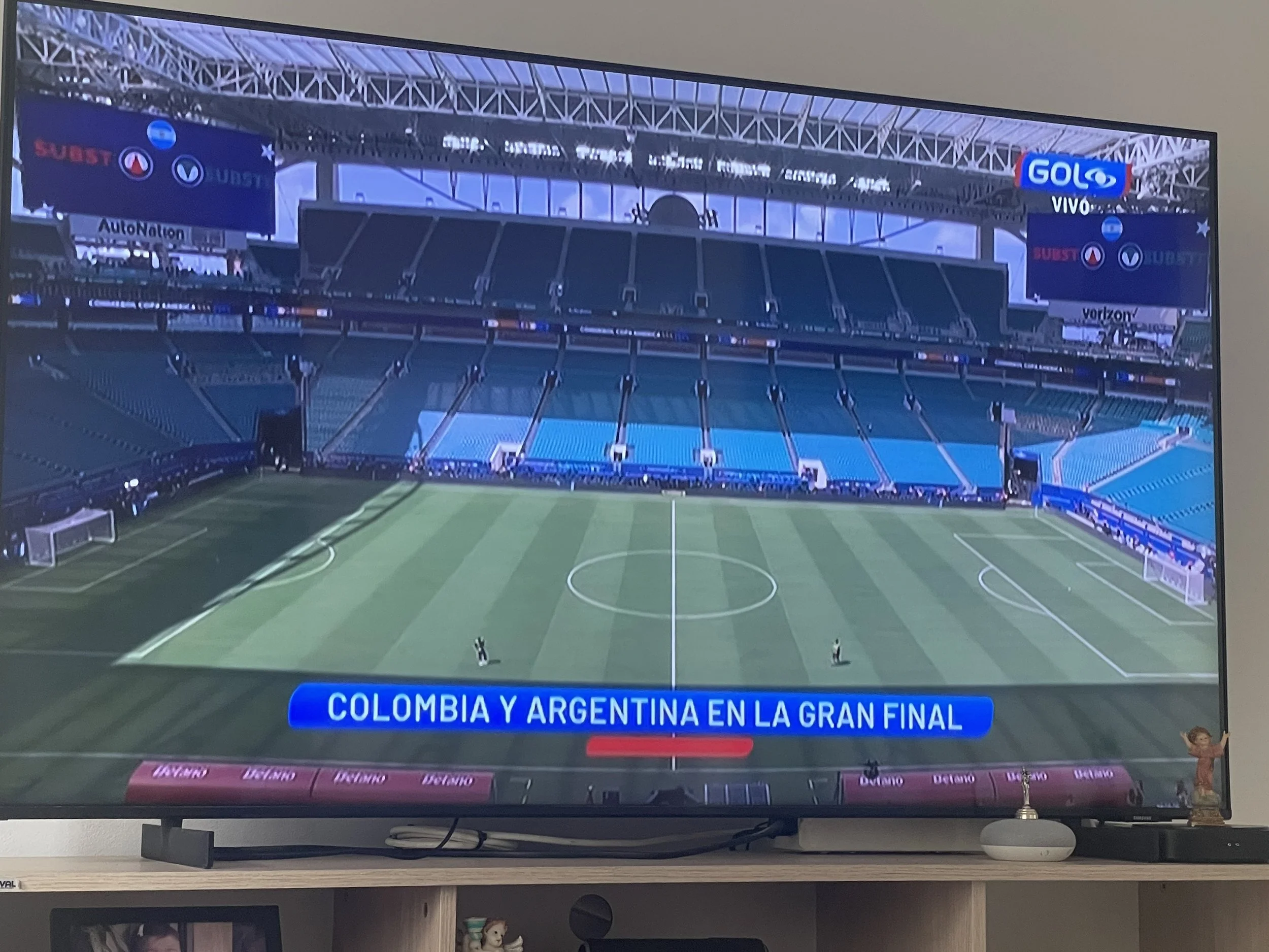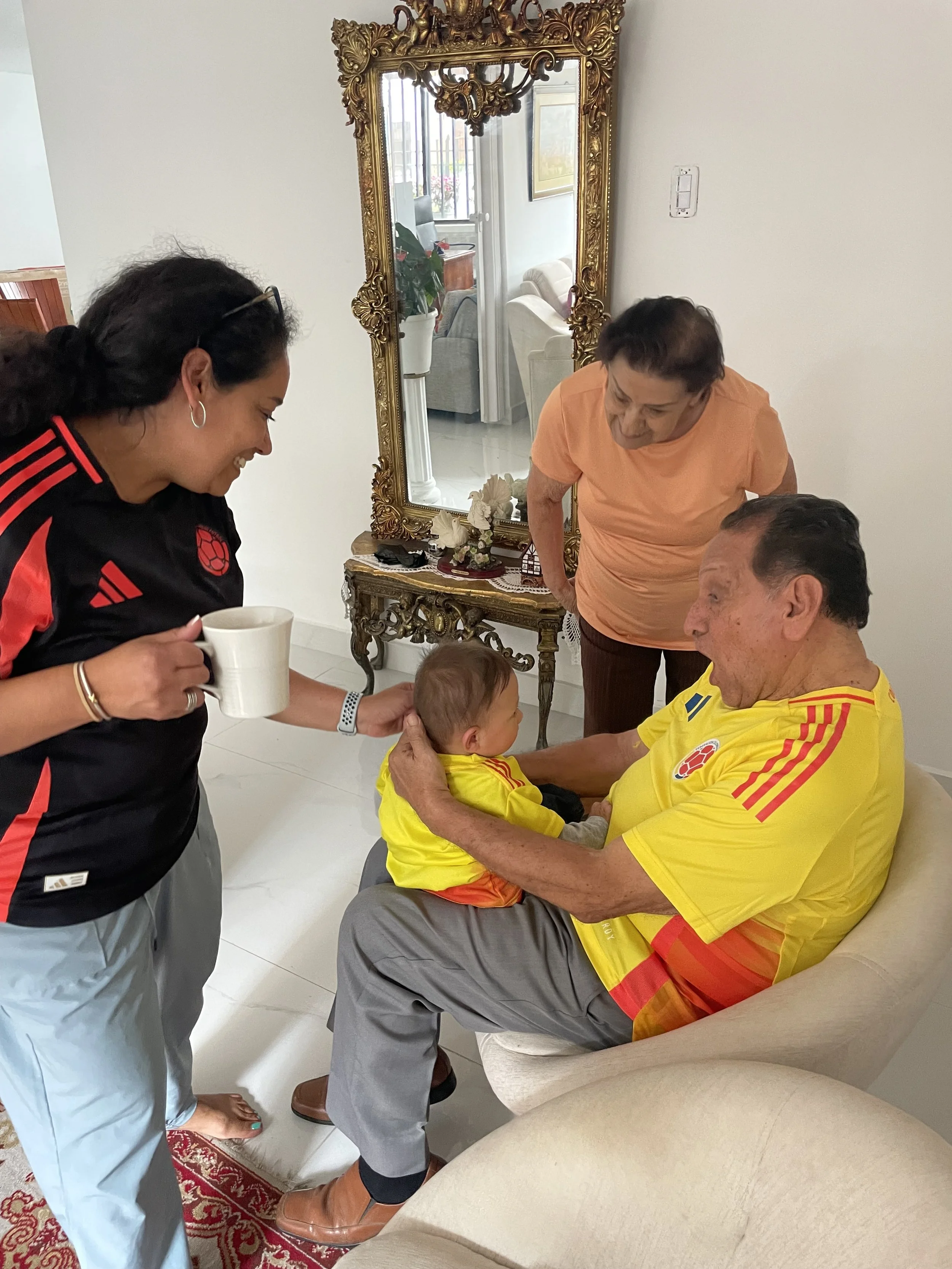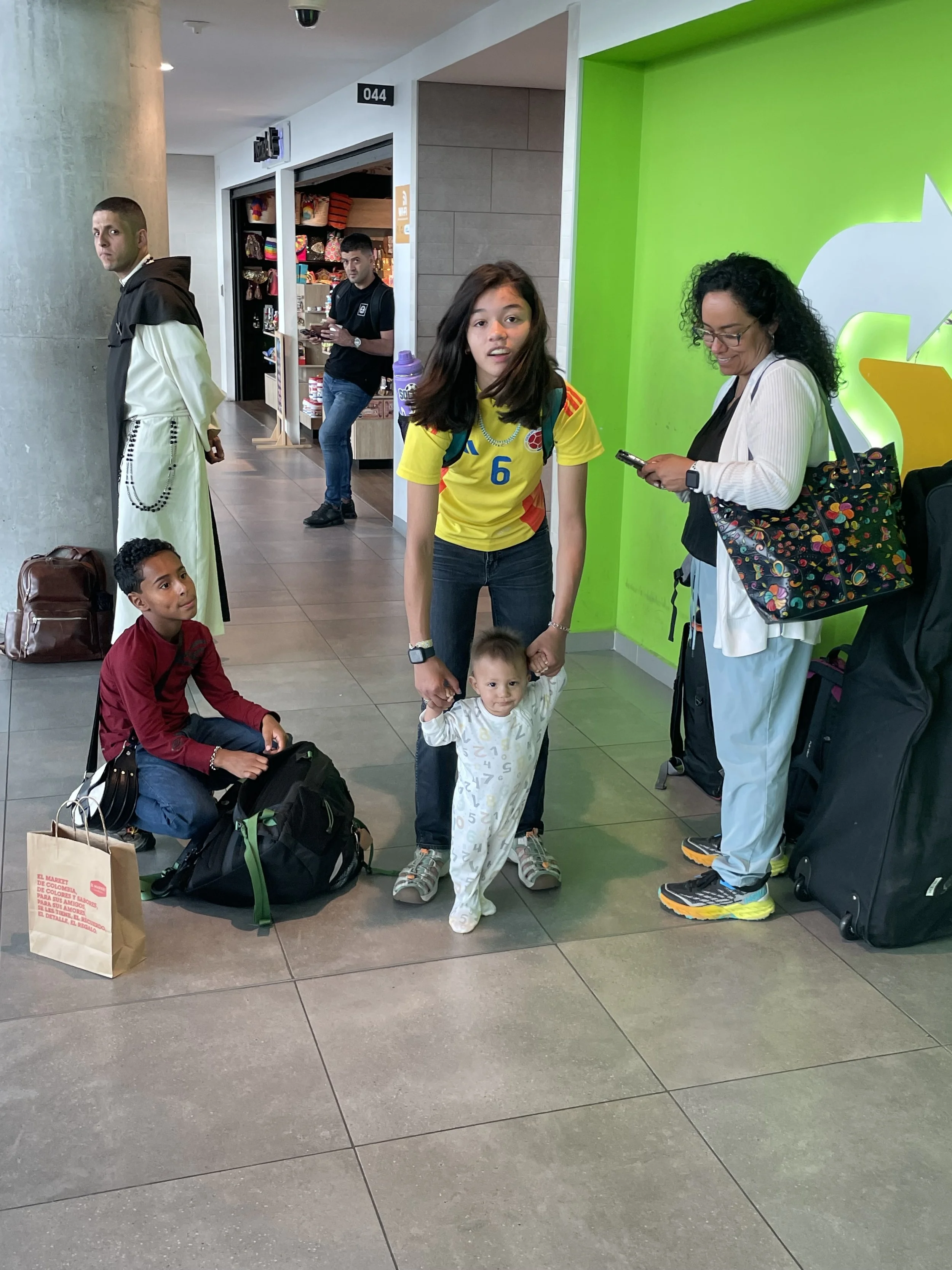 Well, Santi and I woke up at about 8:00 am. We got ready and headed downstairs for breakfast and got busy eating eggs, toast, and mango. Mami and Papi had to go drop off some bags at the Coordinadora so they could be sent to Pereira because all of them couldn’t fit into the car. Turns out that the website said that the store was open, but when they got there it was closed. So, they hurried back home and got ready to order 2 Ubers. One for the bags and the other for the very stressed out human beings. Don’t worry, we all got there on time and the best of all… WE WERE EARLY!! We stopped by and bought ourselves some Starbucks coffee. I ordered a caramel frappuccino and it was amazing. It was soon time to go through security and it all went smoothly. Right after security it was time to board but we hadn’t changed Andre’s diaper, and he was getting a bit fussy which was a bit of a red flag. We boarded the plane and got all situated. He started being complicated so we tried to entertain him with many different things but that didn’t work either. Finally the plane landed and we got out ready to reclaim our bags and head to our grandparents house. The drive took about 20 minutes. Once we got there Andre was already asleep, so we put him down on the bed and he stayed there for about an hour. For lunch we ate some beans,rice,plátano,and meat. We hung around the house for a while until it was time to attend mass. Mass was pretty good because I could actually understand the homily. When we got back we were ready to cheer on the men’s Colombia soccer team in the Copa America final.