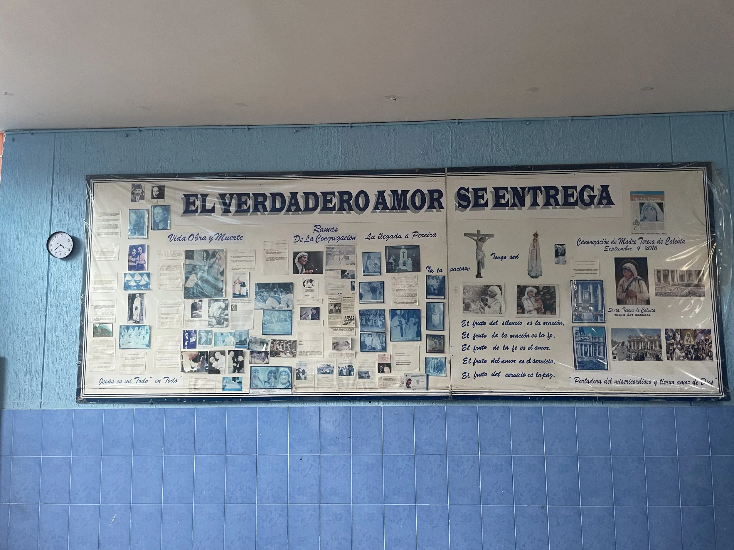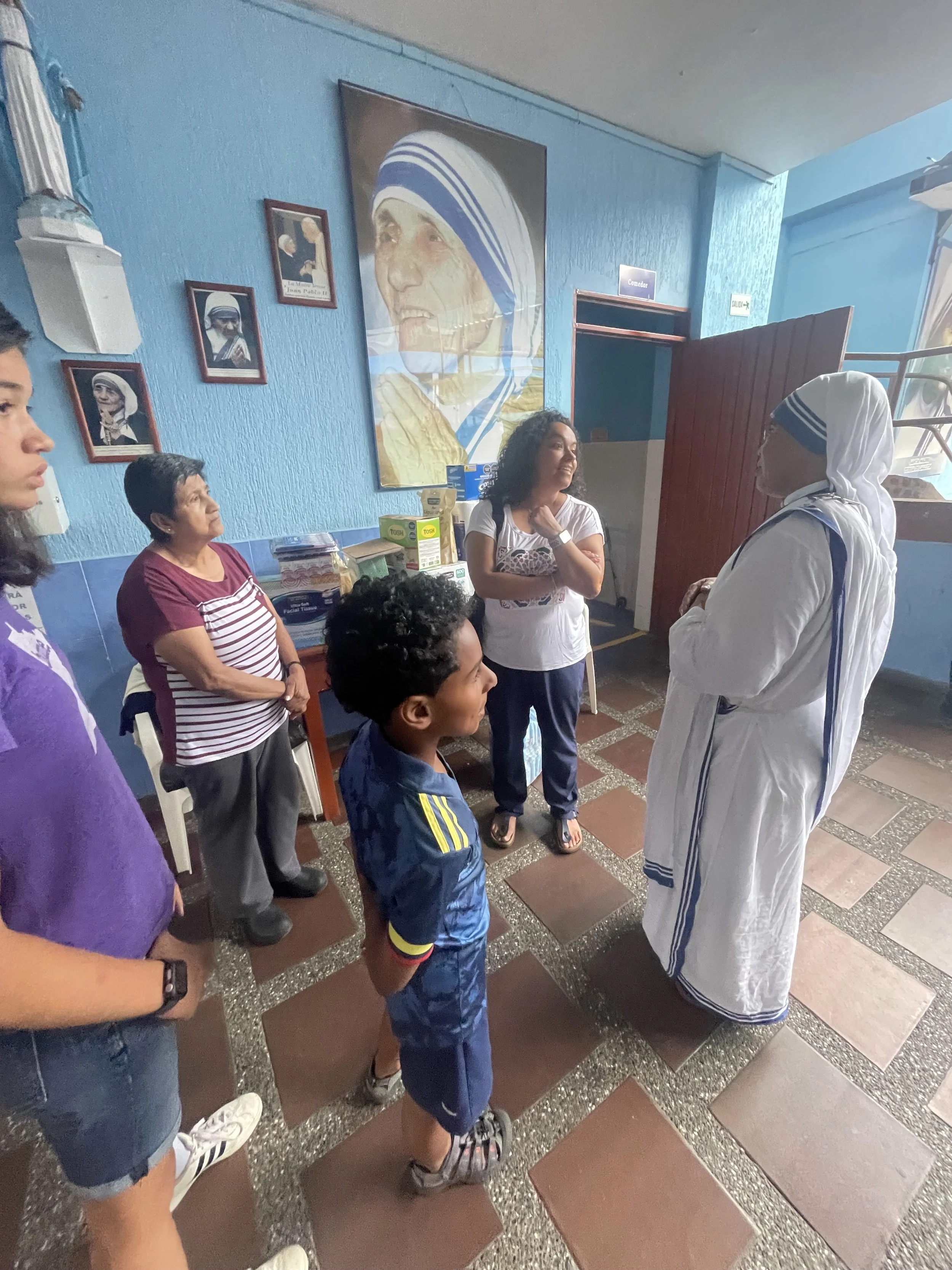 The plan for the day was to drop off a donation at the Sisters of Charity (Mother Theresa of Calcutta’s Order). We did make it . We met a young sister from the Philippines who had been with the order only 2 months. There are about 10 sisters there, 5 colombianas, a few from the US and 1 from the Philippines. Her English was really good which we appreciated. Their mission used to be the elderly abandoned and homeless but it sounds like their mission has shifted to the homeless addicts who seek their help. We talked about donations for the future. I know some at our parish were asking what they needed. Sheets, blankets, towels are always welcome. Personal hygiene items were what they requested when we called and honestly the main reason for our trip to PriceMart (Costco) yesterday. Also, just cuz we’re convinced that nuns need a treat, there is a box of Oreos on the table in the back. The sister smiled when we pointed it out.