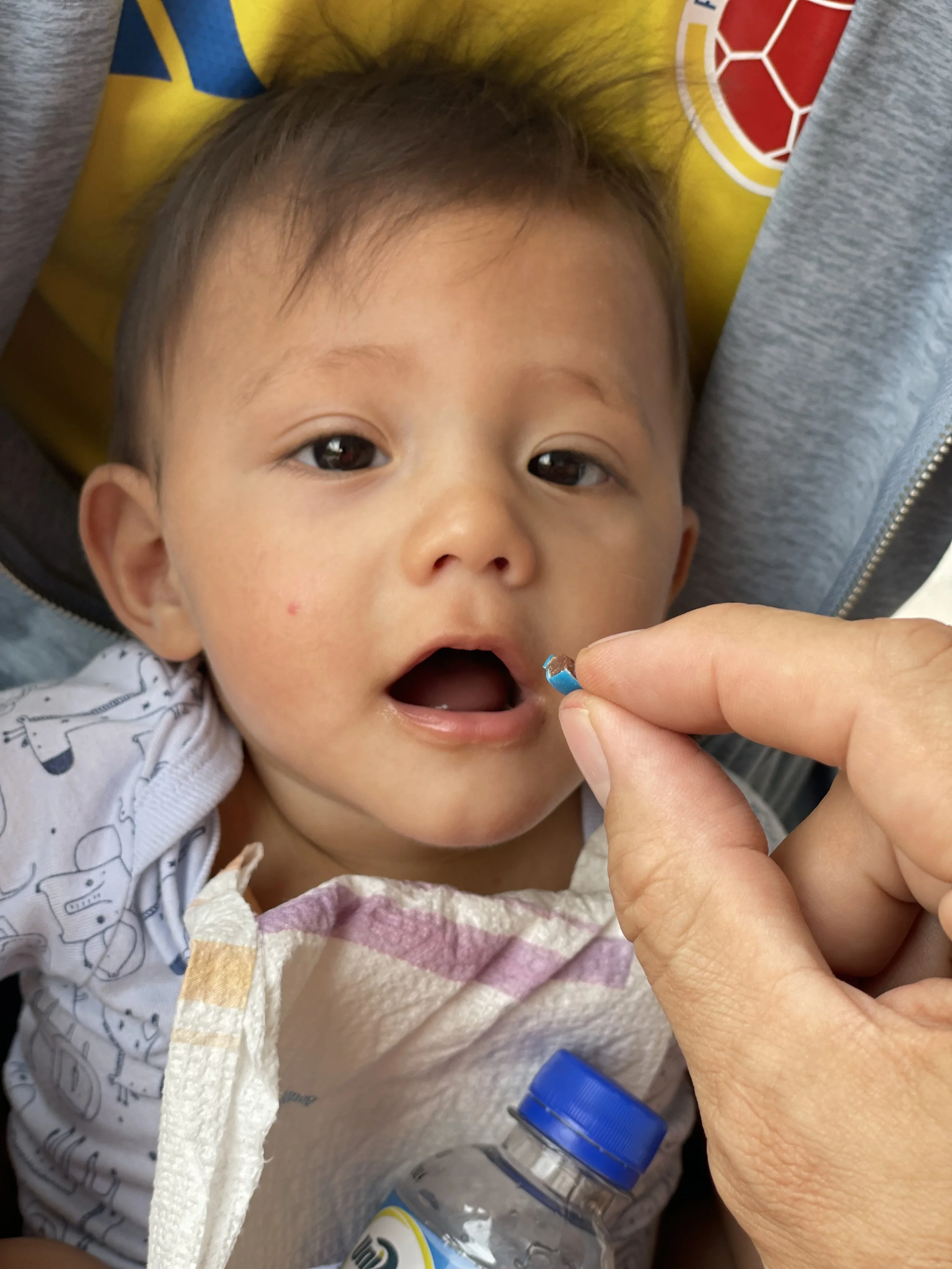 First taste of an M&M…let’s just say he was a big fan! Mami did not approve.