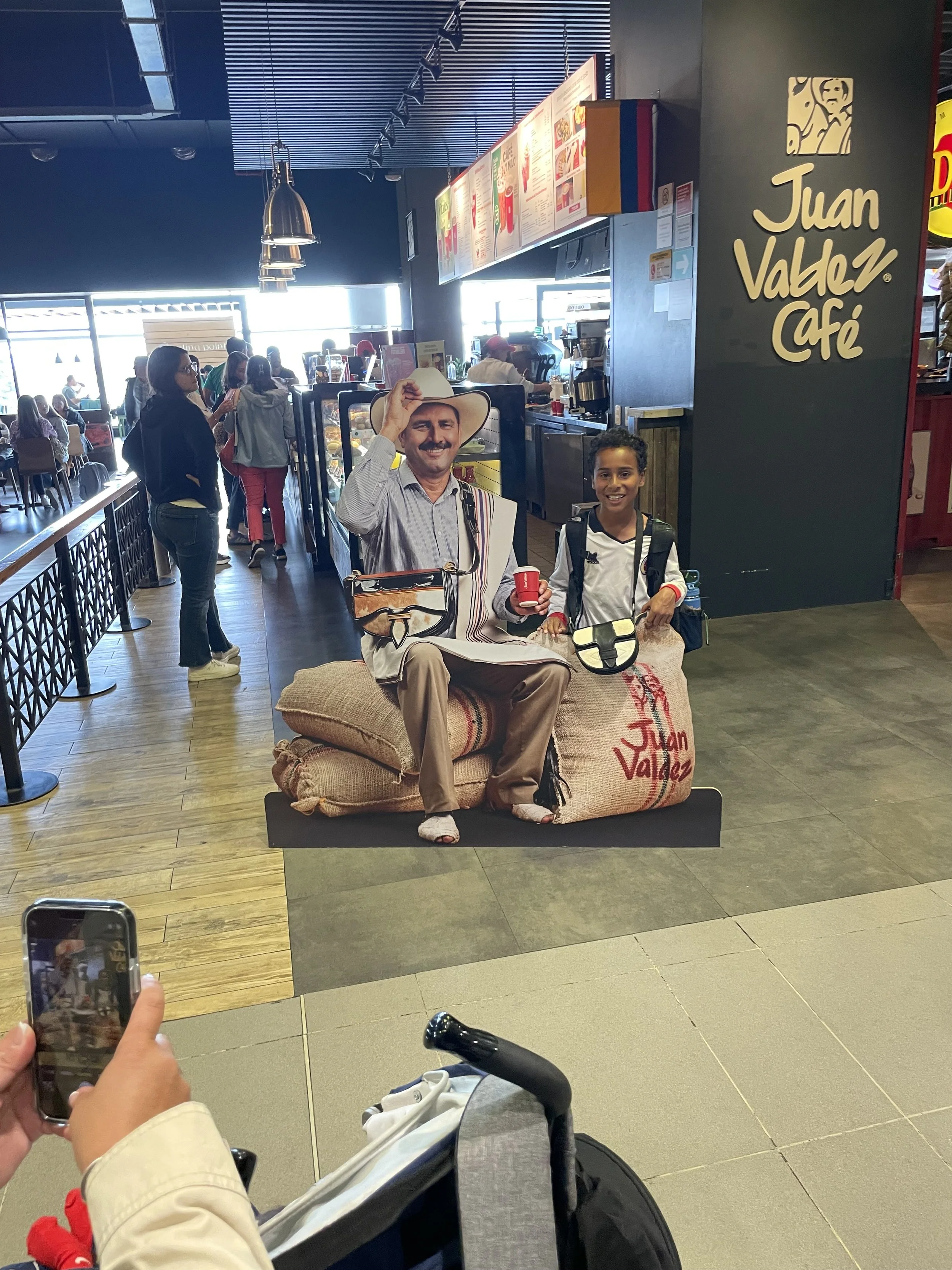 My man chilling with Juan Valdez at the airport