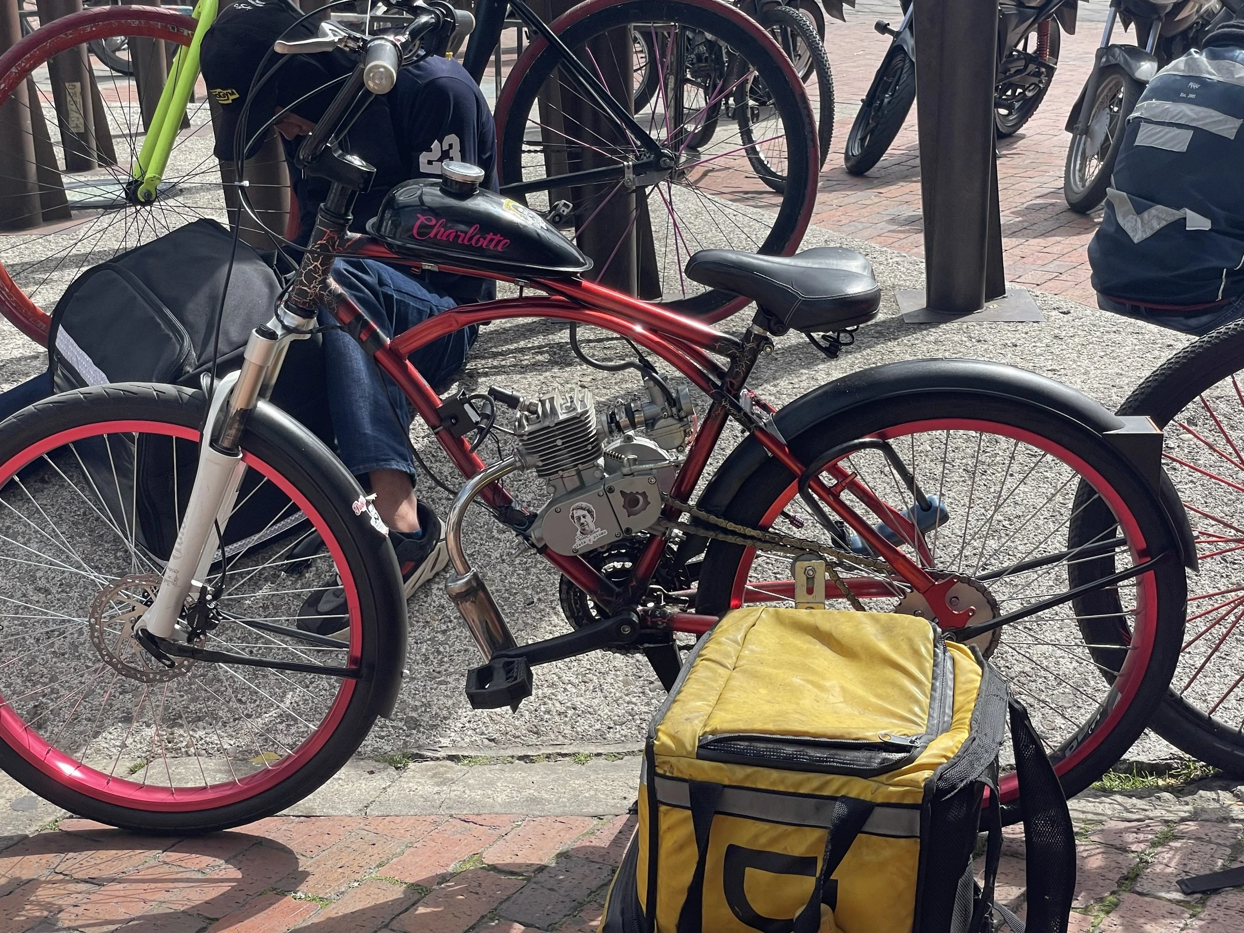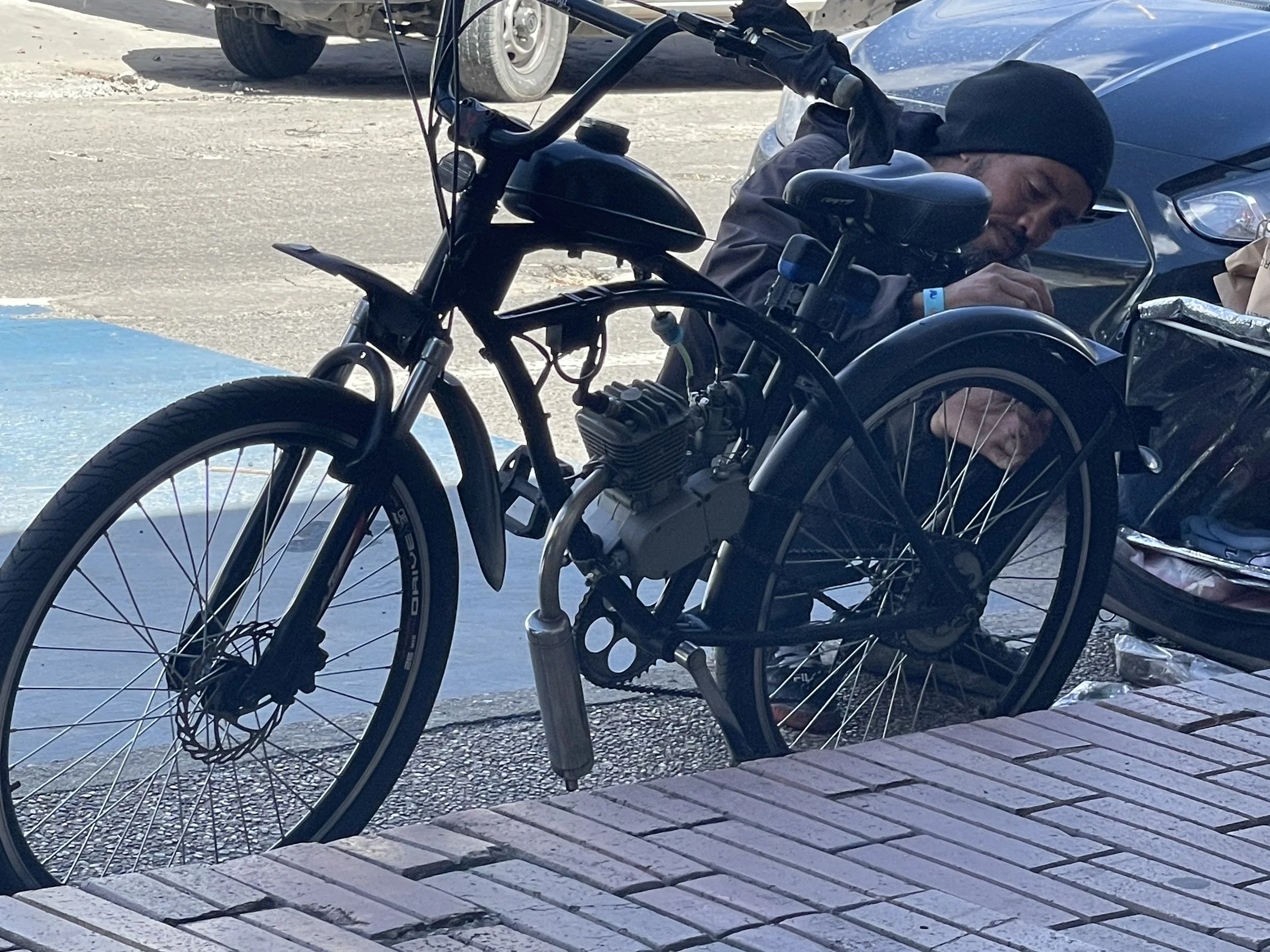 Bicycles motorized with weed whacker engines. See pictures below. This takes some creativity and it works pretty good. You’ll see these guys whipping in and out of traffic too.