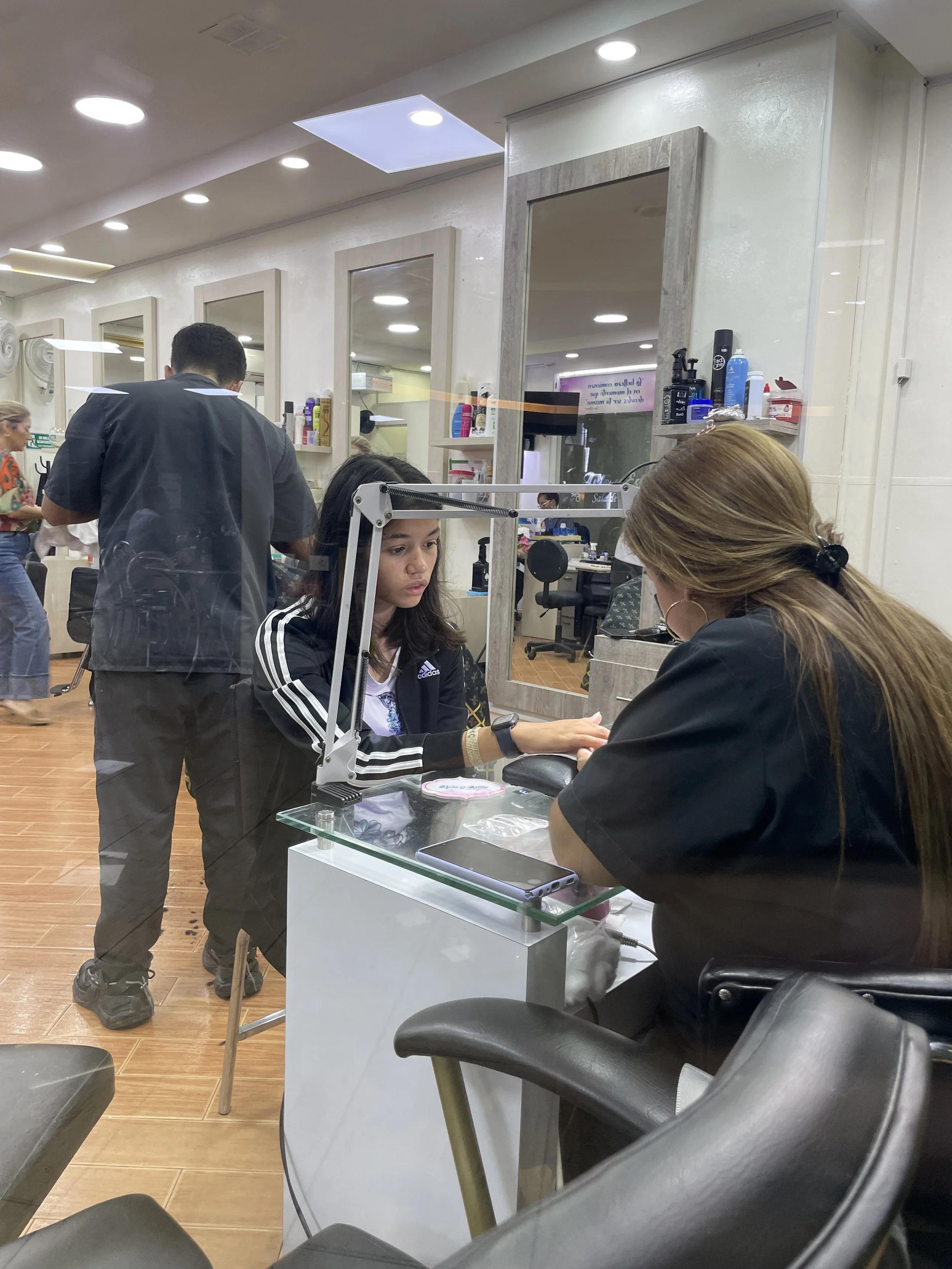 Manicures are so cheap here but had to coerce my 14-year old to get it done. I recommended she do her school colors and that was the trick!