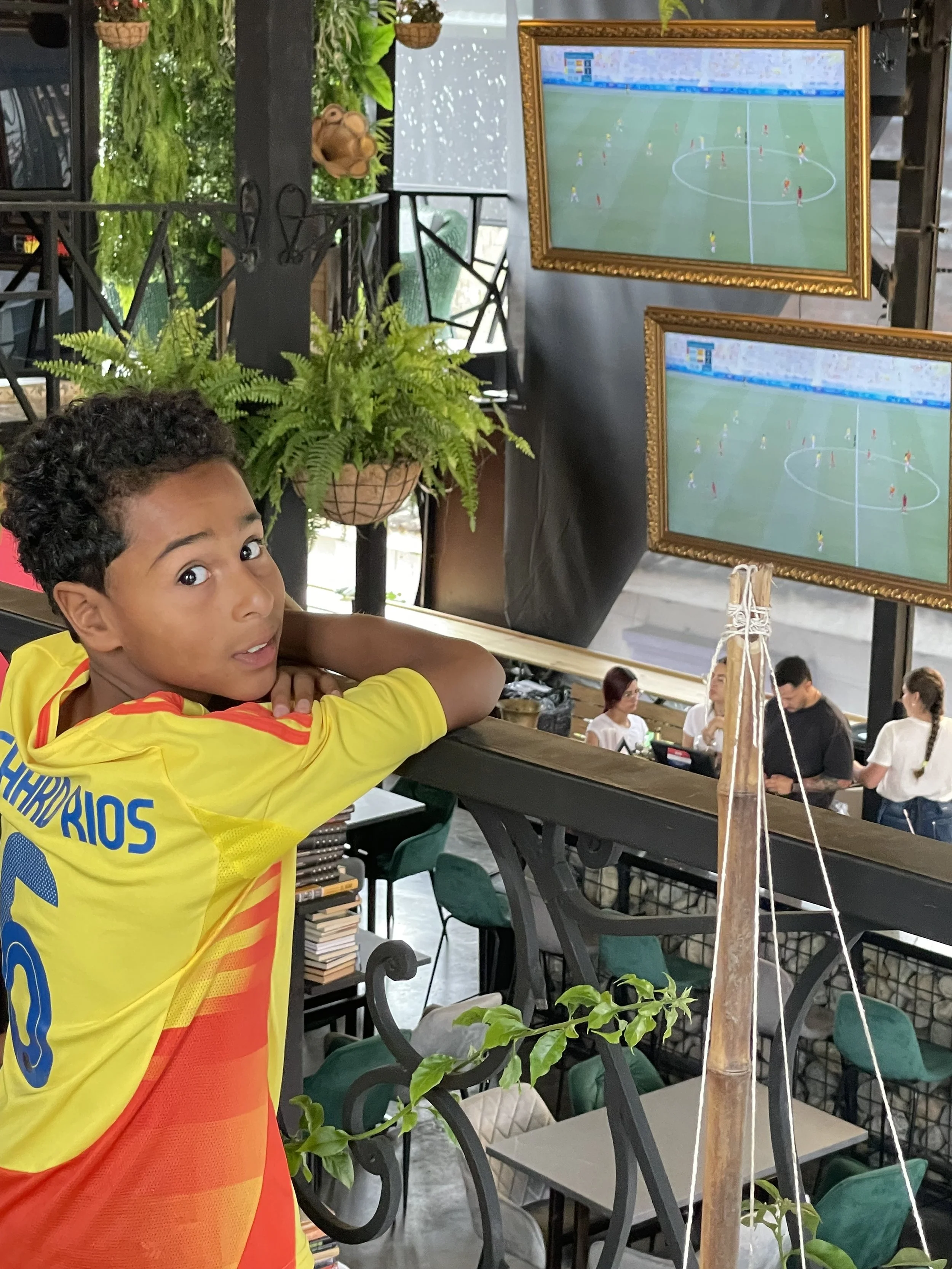 Back to the camp for our Santi. Today was game day for the kids. On our way back to the apartment, we drove by an area that was selling all the Colombian soccer jerseys for the Copa America which, Colombia is playing Argentina for the championship as I type! So we went and ordered personalized jerseys. They both wanted the same player, #6, Richard Rios. So no confusion there.