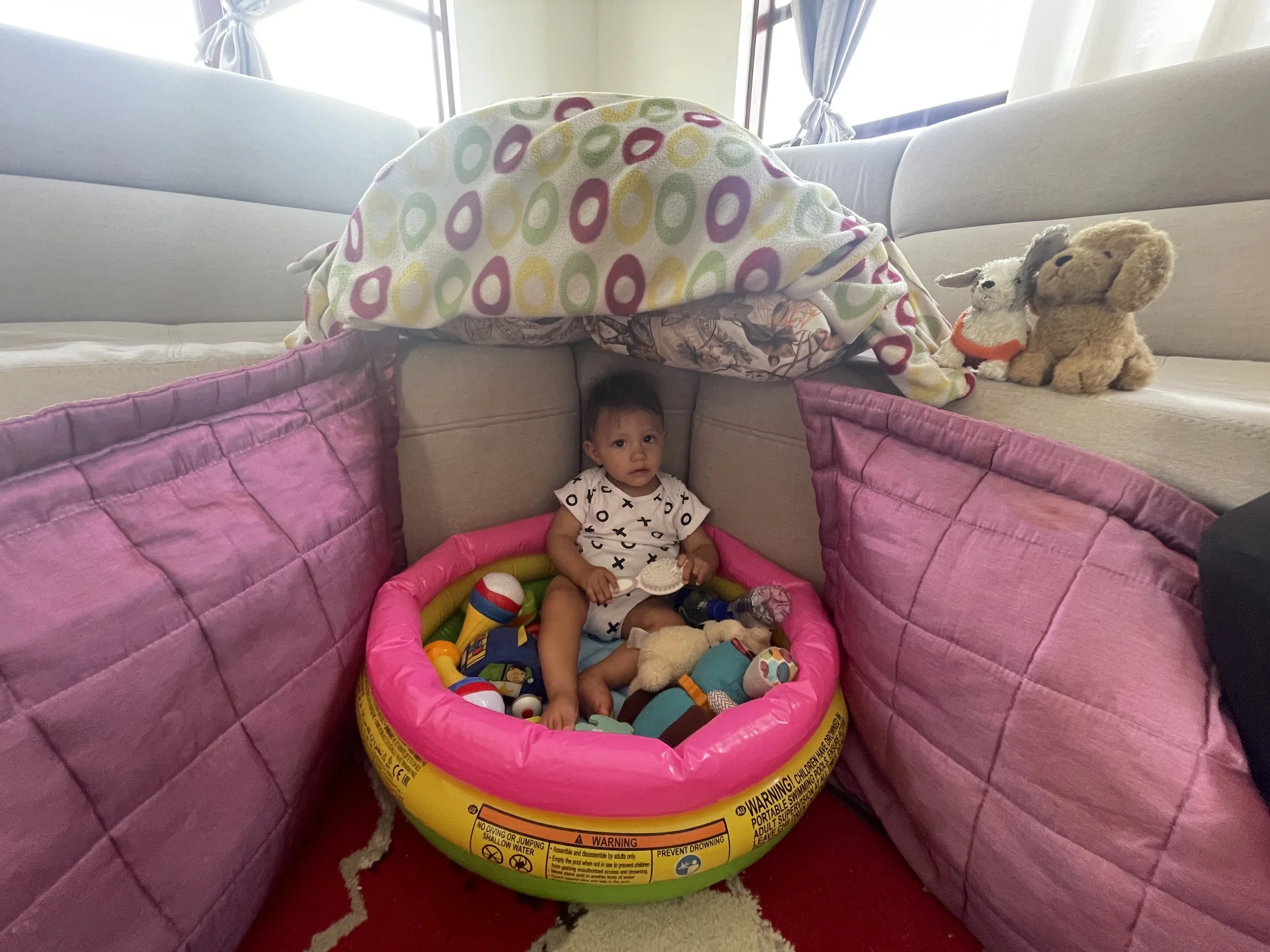 August 8. Fort building. Anyone else remember these times? I like to say that I was an awesome fort builder back in the day. Santi enjoyed and introduced peanut to the greatness of fort building.
