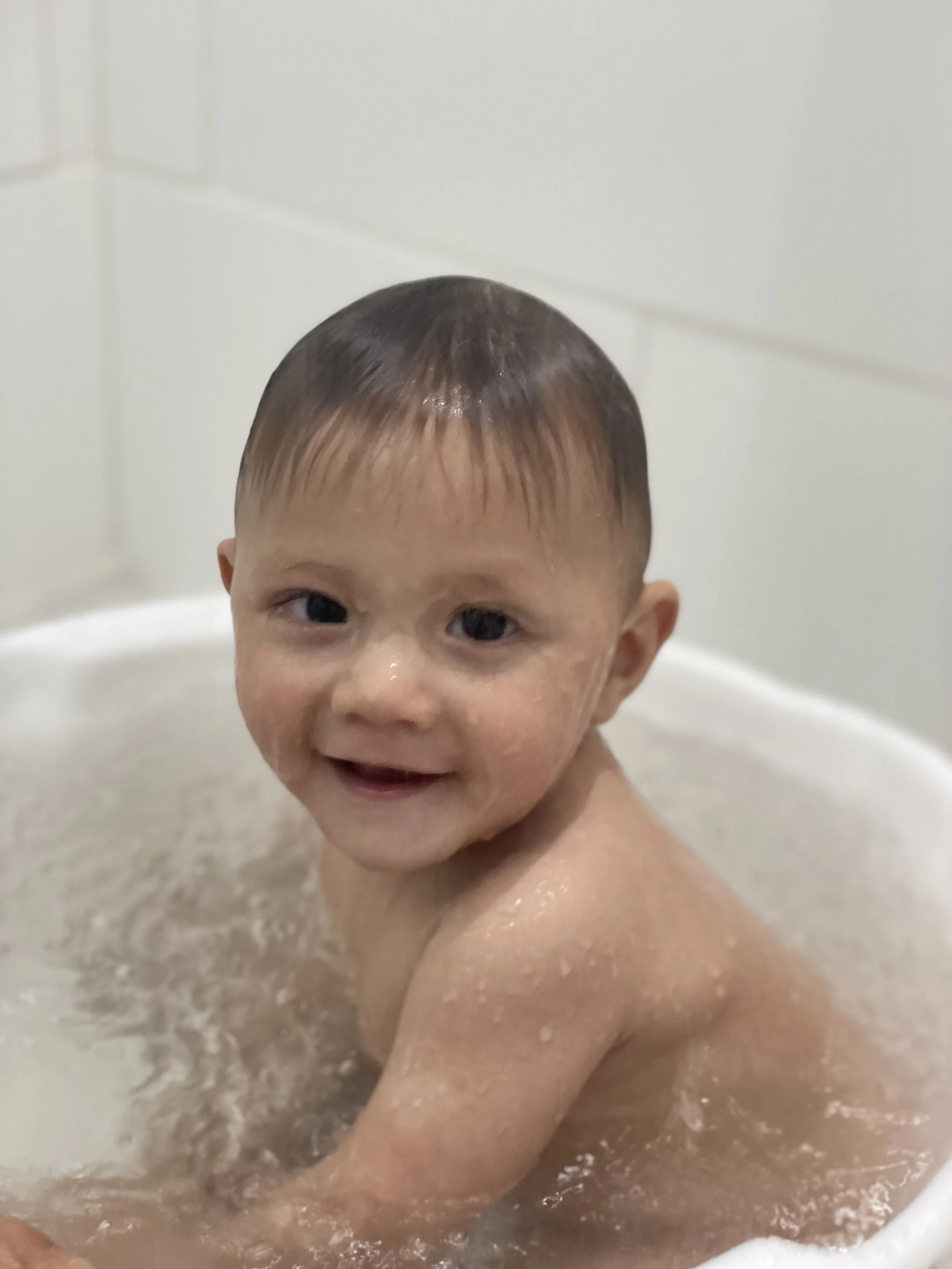 That is NOT an expression of joy but he is still learning that as parents, it is our job to torment.