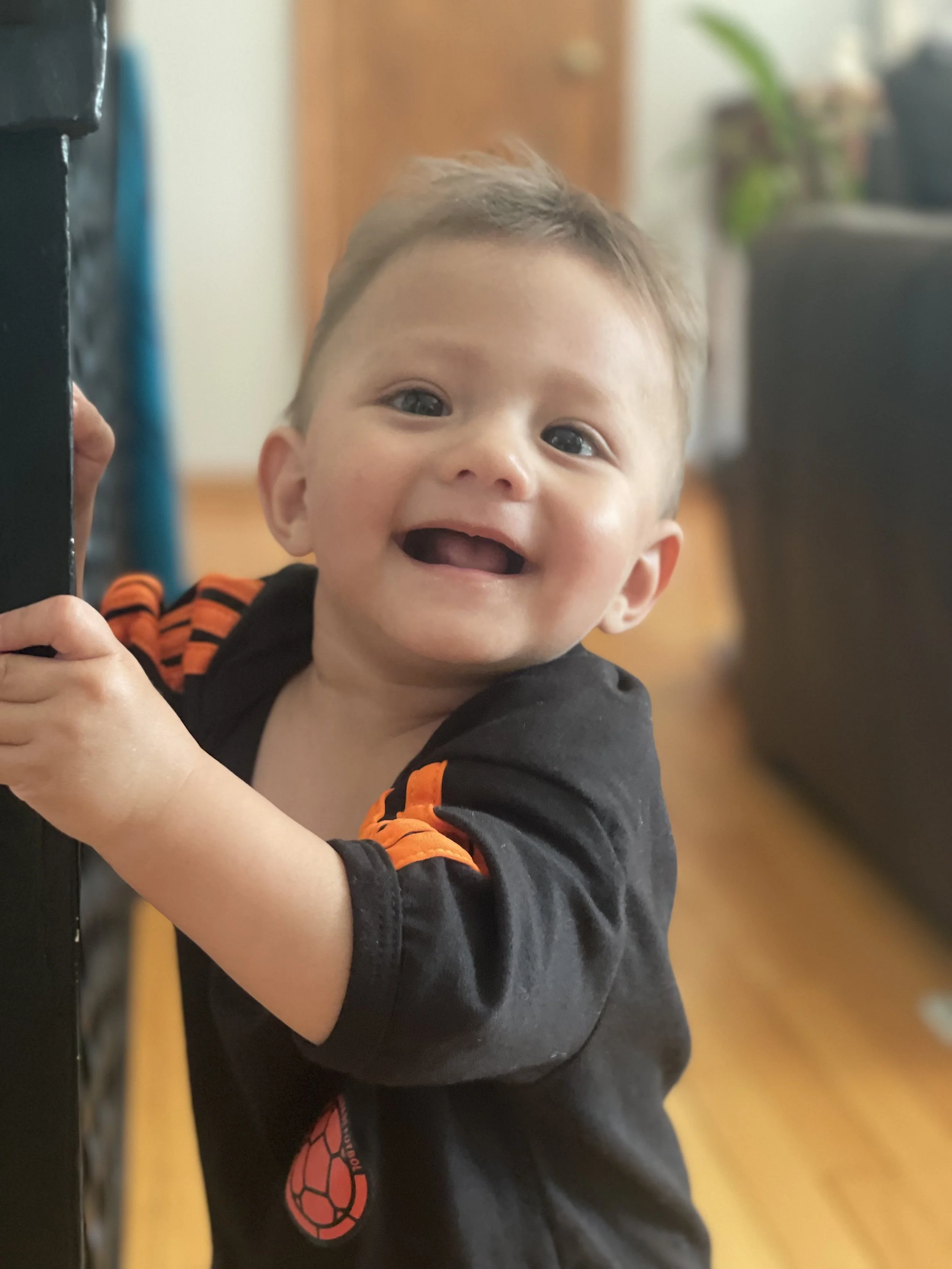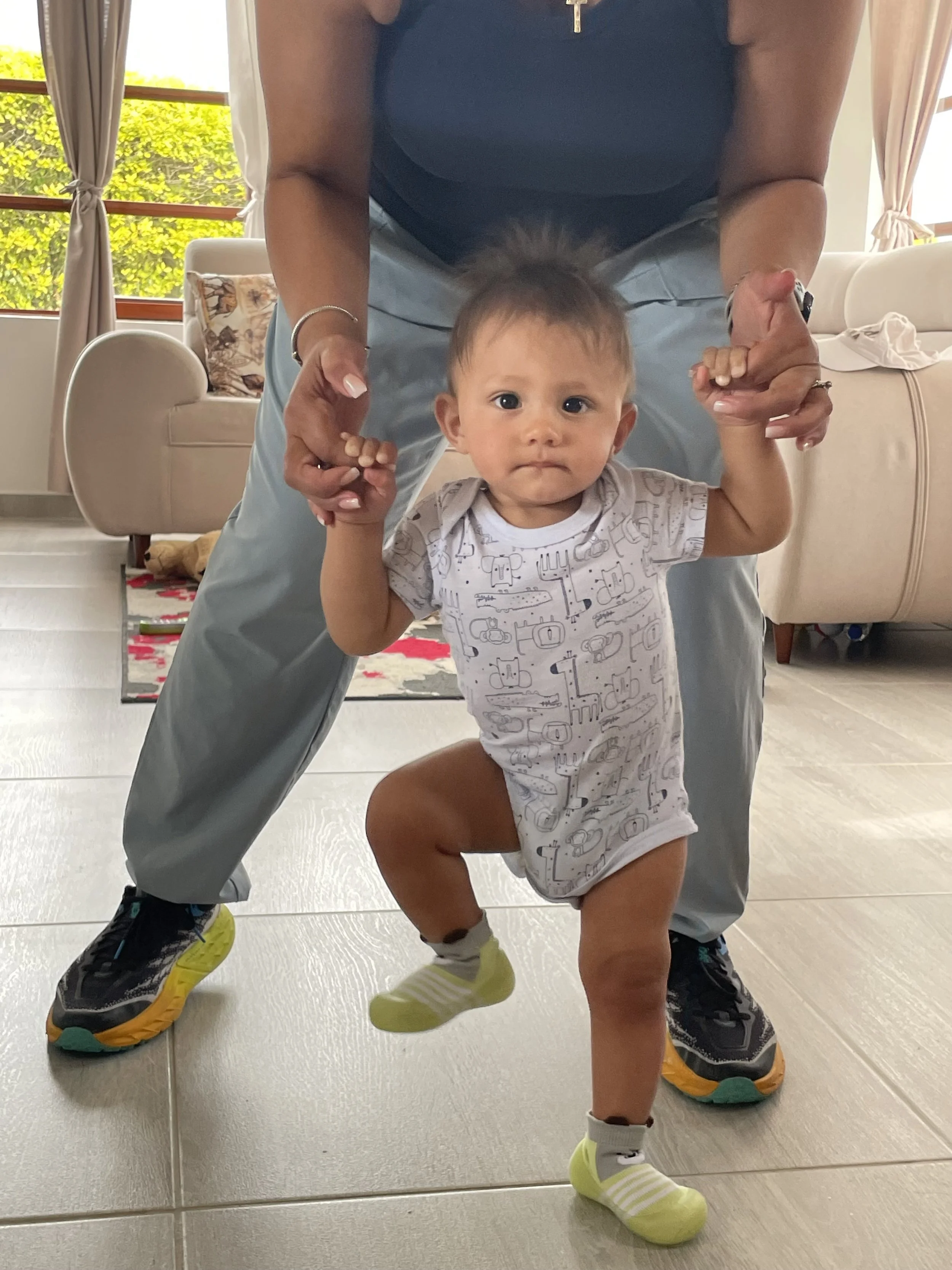 Someone is in a hurry to learn how to walk. The big leg kick you see here is really popular with my 9-month old. We’ve told him the the shoes he is wearing combined with his leg kick are for “hormigas”…ants. To be clear, I do not encourage him stomping on ants. It’s only a joke.