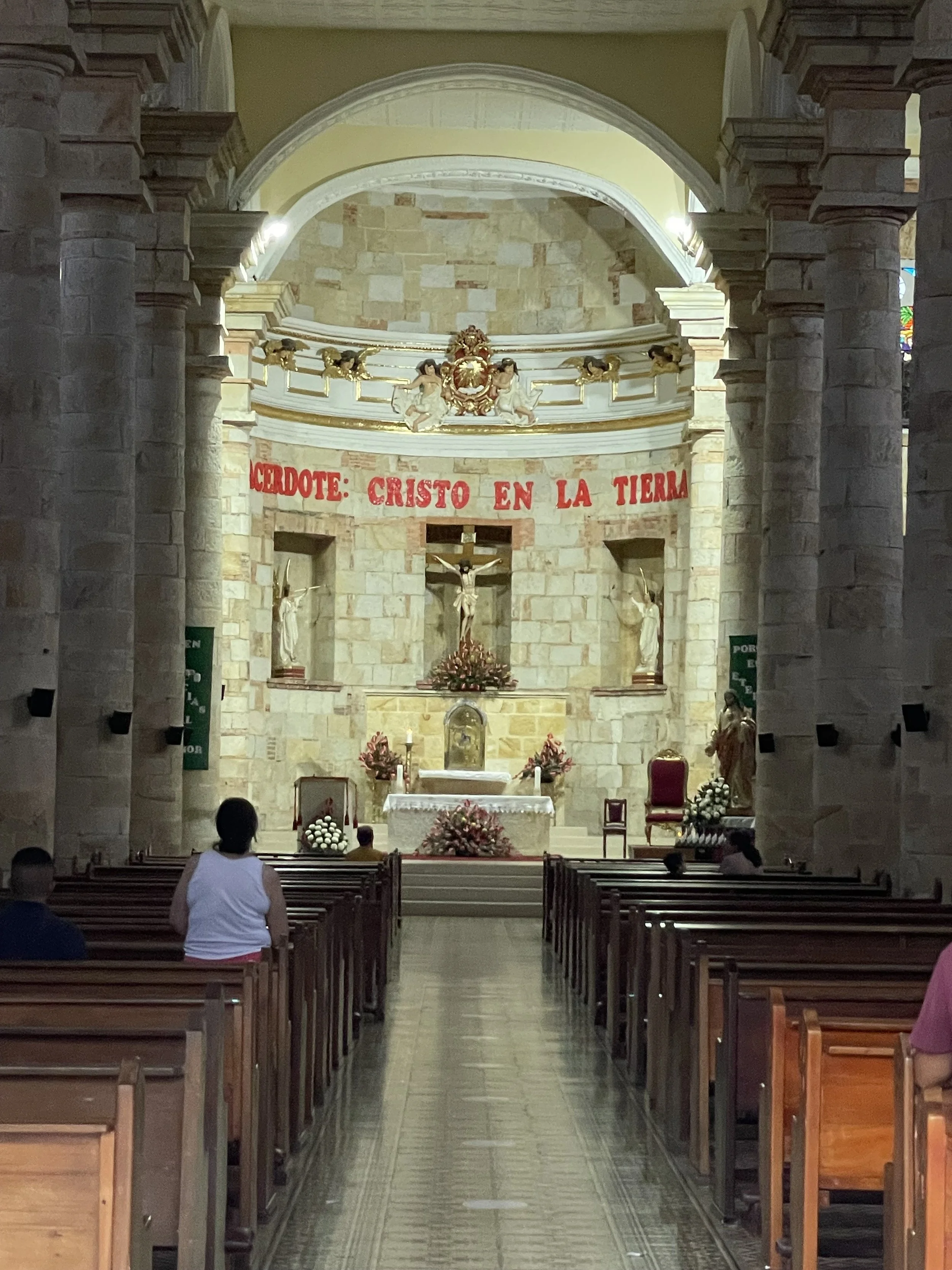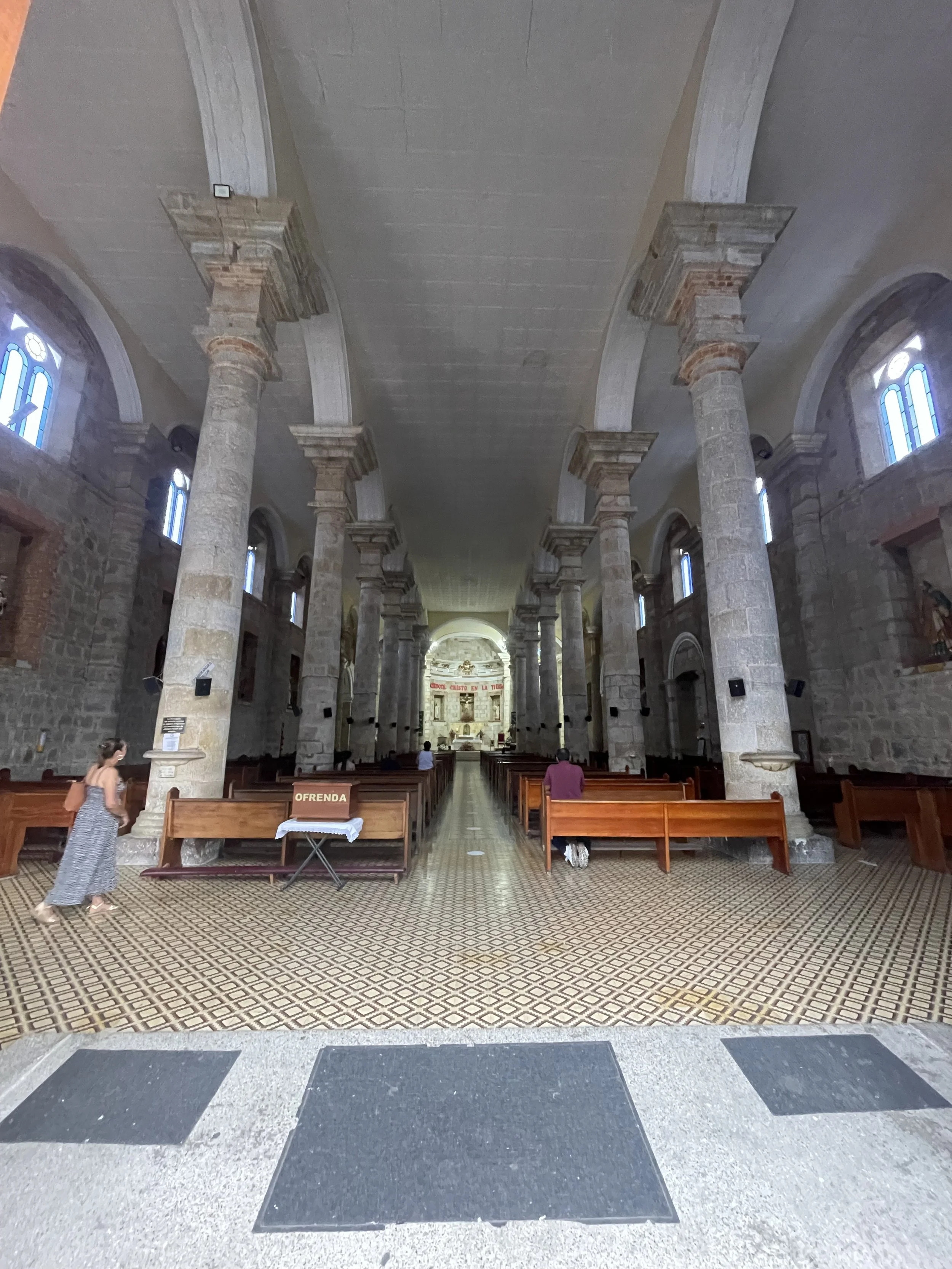 After lunch, we had about 45-minutes to kill before mass. We went to a little grocery store across the street and personally, I was a bit disappointed. We had a list but this place had so little of what we needed. Don’t be offended for those who like it but me? I do NOT like going to Aldi at home. They never have everything you may need so you need to make another stop. It was just like that. So we got SOME of our stuff but another stop was going to be required. We went to mass at Santa Barbara. This was the main, “newer church “ that was built off of the older one that I shared pictures before.