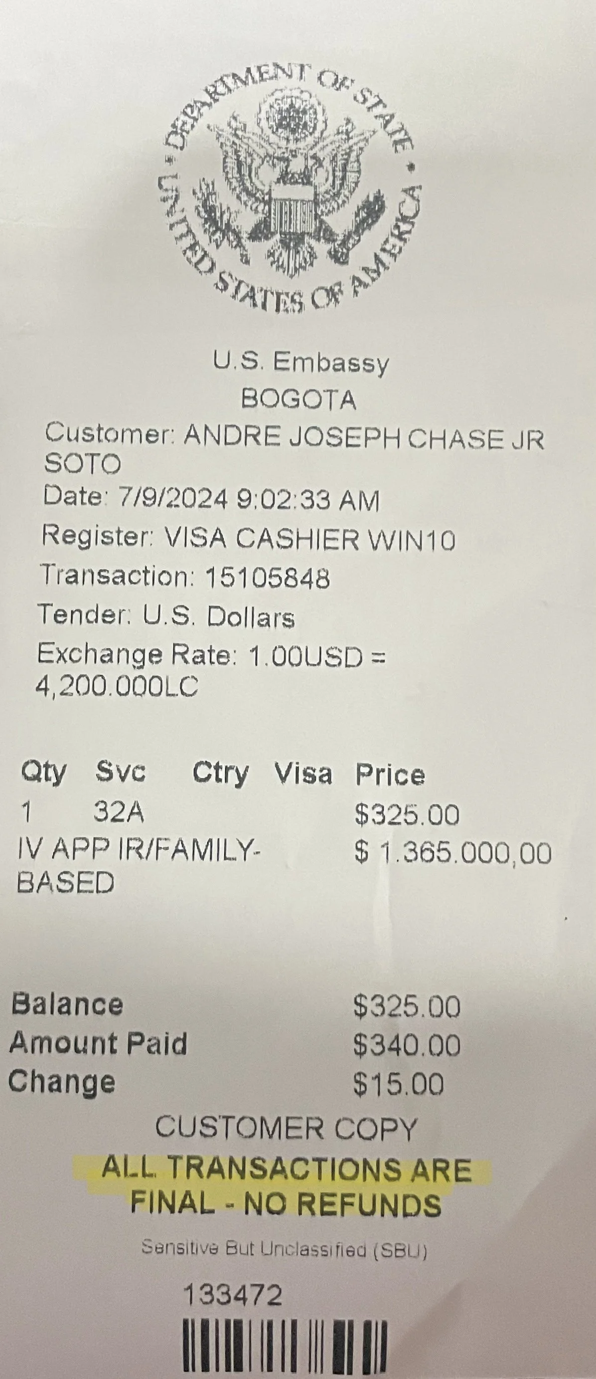 Our time in the embassy was relatively short. Most of the time spent was when I went back to pay the bill for the visa. Ok, honestly I thought we paid for all that stuff already but they continually Nickel and dime you to death. This one was to the tune on $325! Seriously! Enough! The agency sent a lady to help us navigate the system and get in quicker. Remember what I said about the line? We were escorted to the front where our name was on a list. They even stopped the security line to let us butt in. But I can’t imagine doing that all with Andre. No shade, no shelter. If it rains, deal with it. But once inside, I was lead back to pay that bill. Couldn’t do anything until I had a receipt