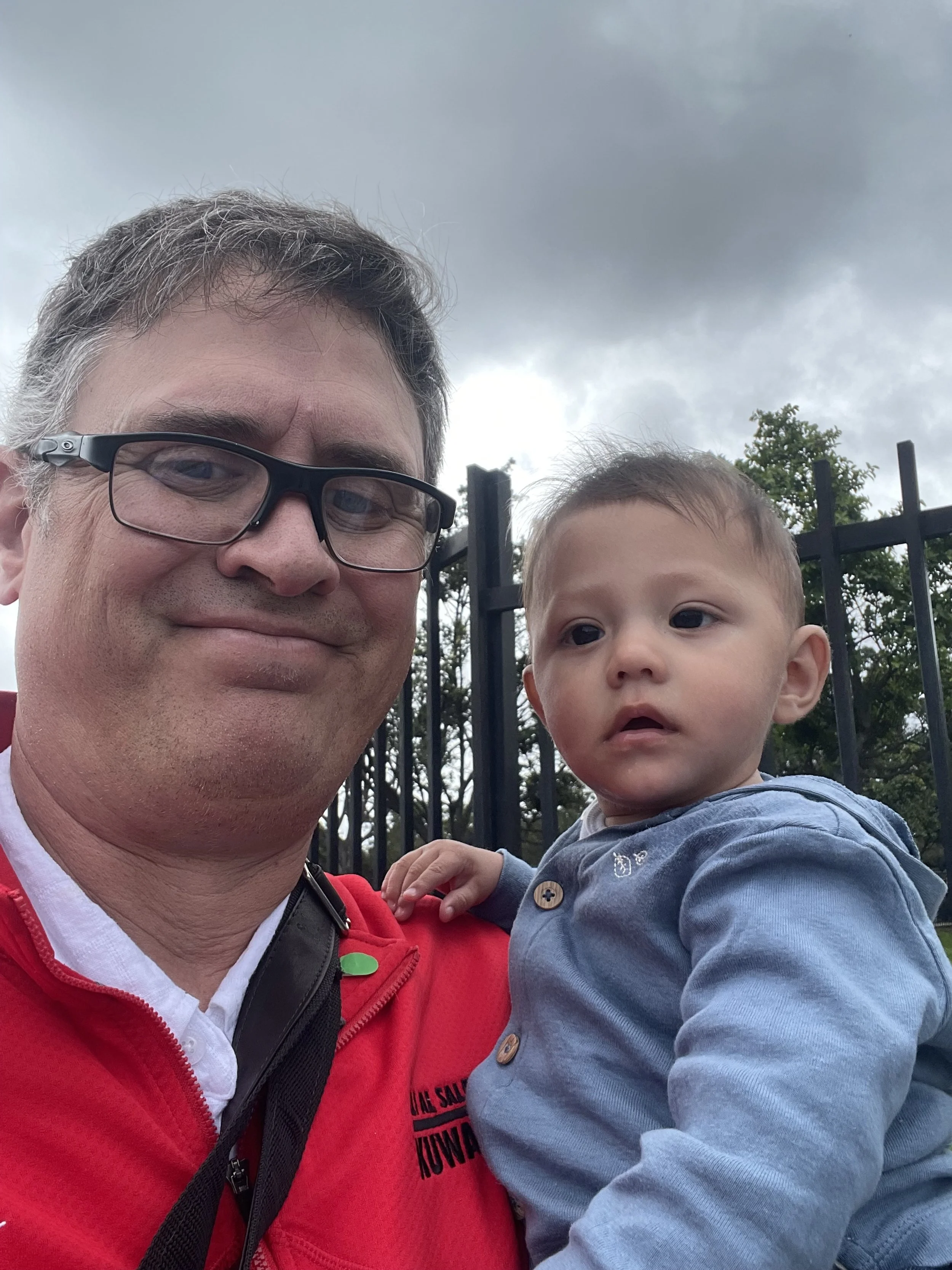 Having completed the visa, we walked out and I took this selfie since no cameras were allowed inside the building. Mr. Chase, the little one, looks thrilled!