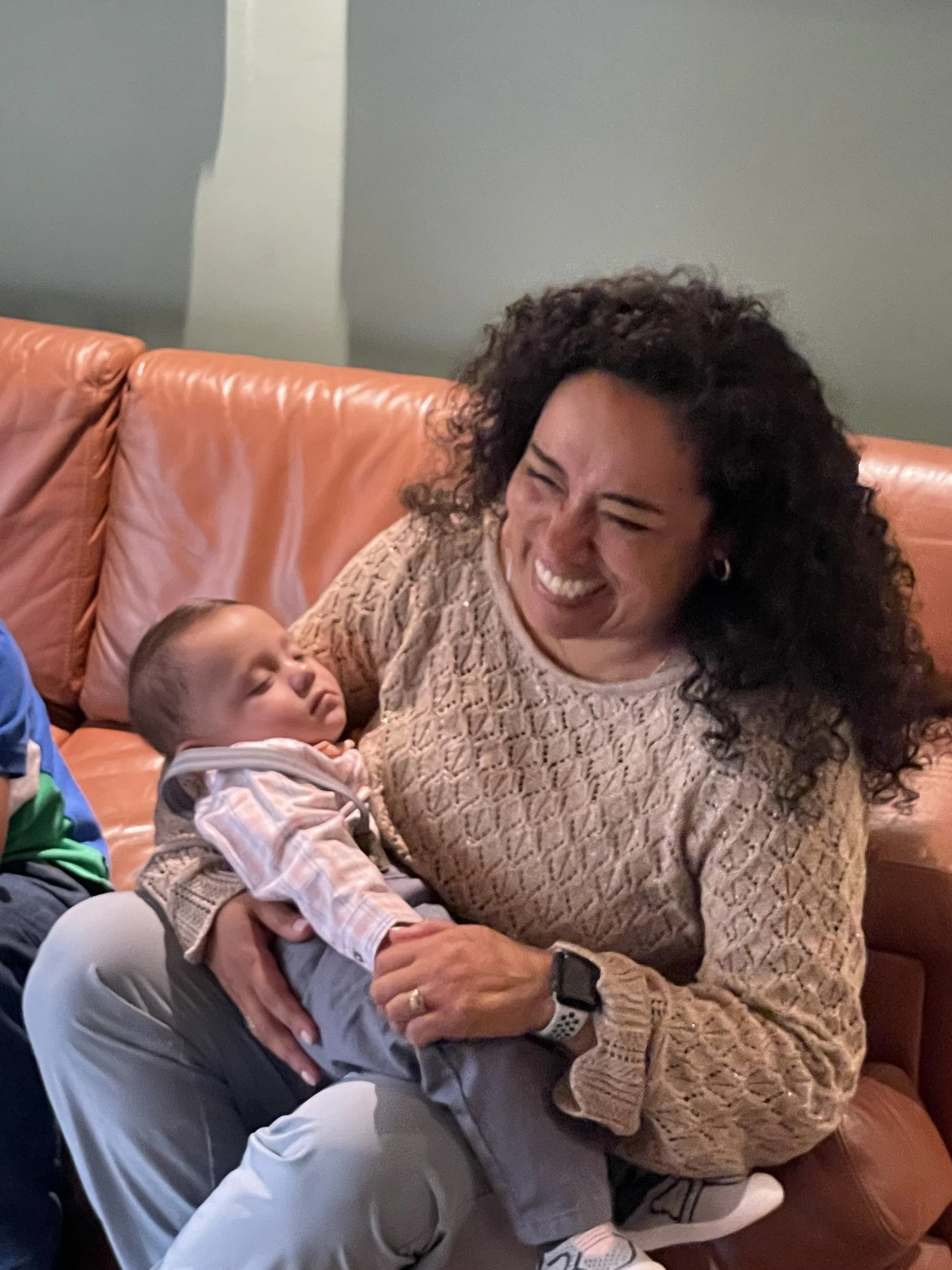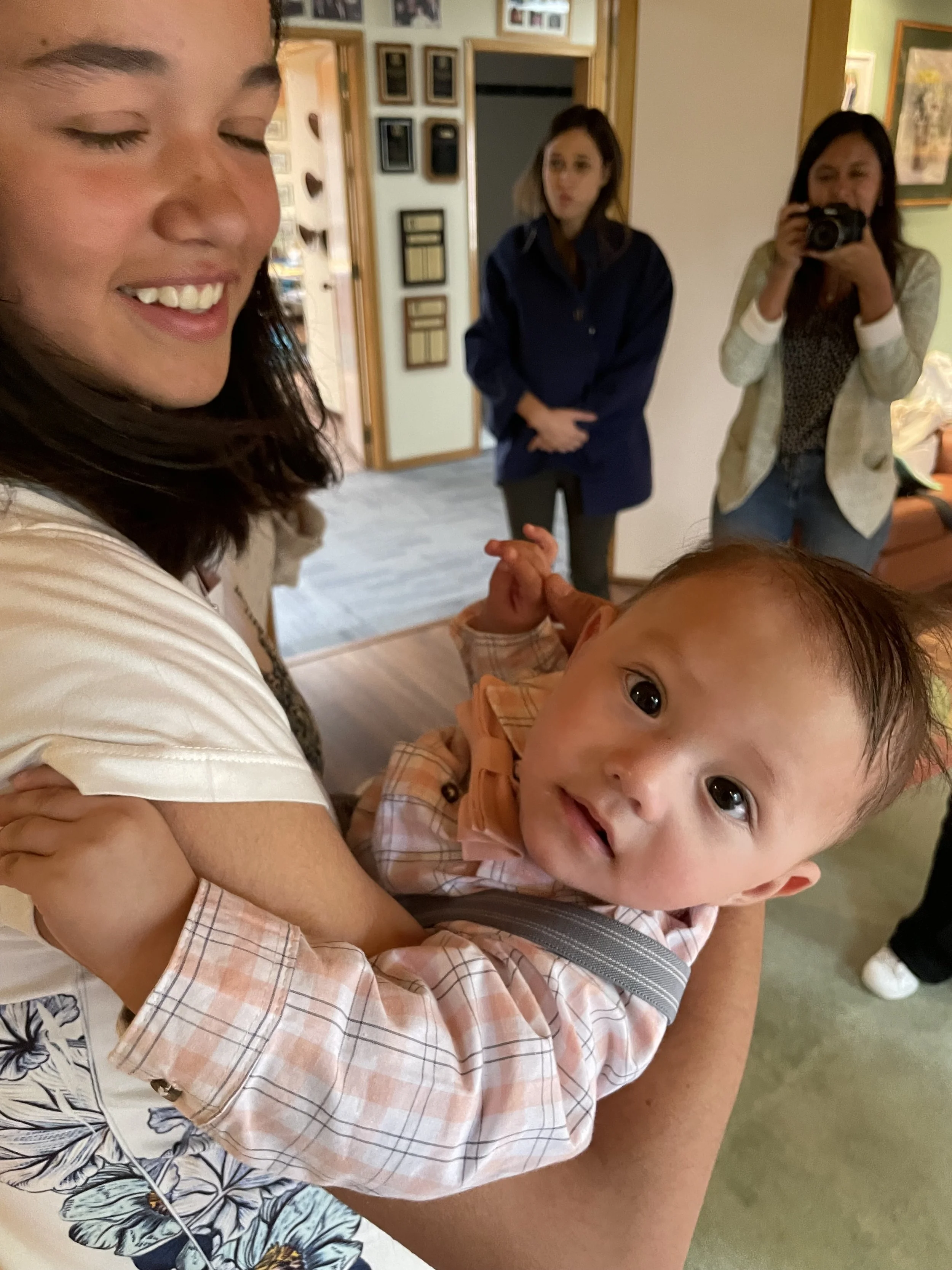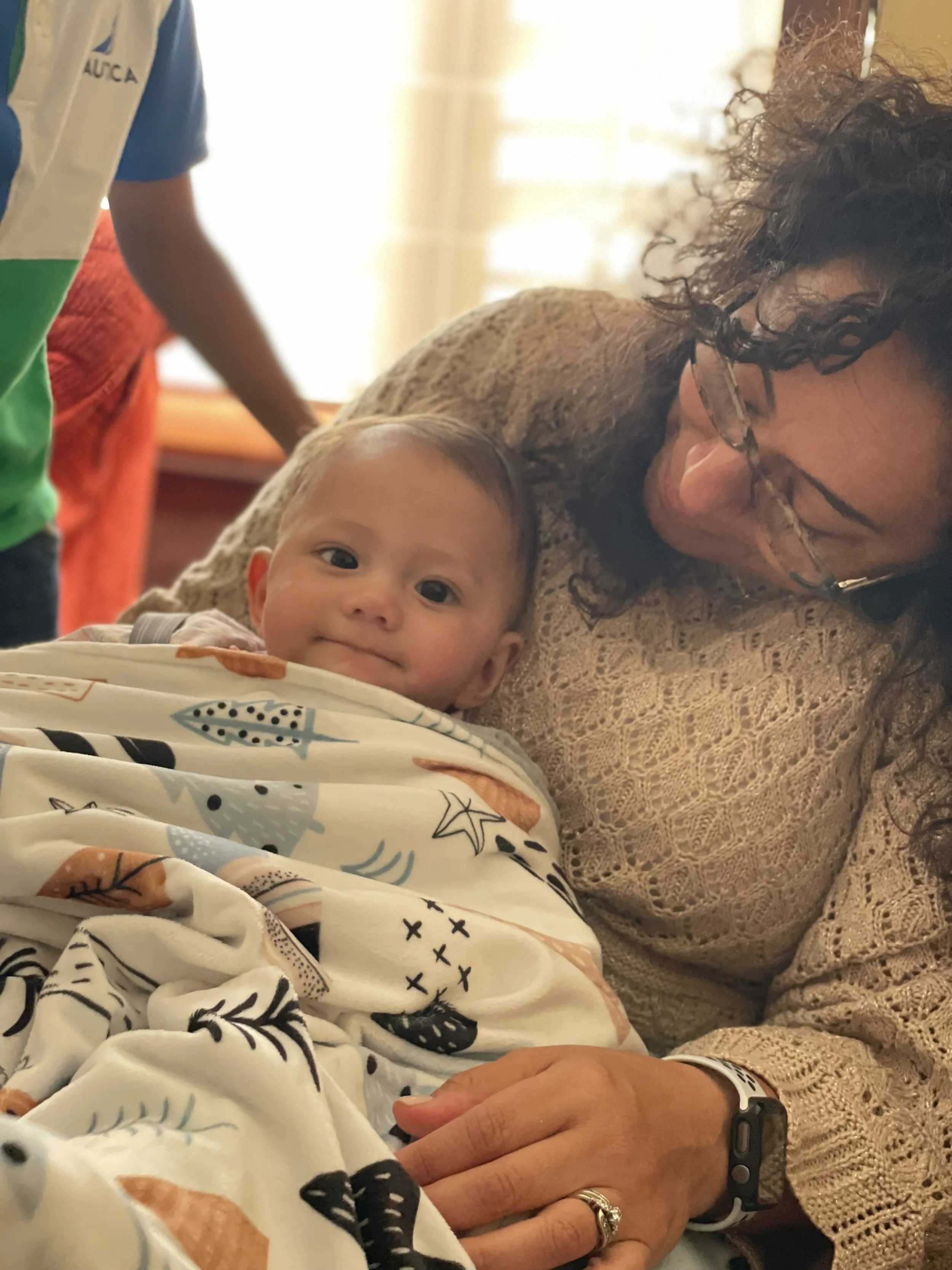 And the eyes finally come open to a new world. He wasn’t scared, not even a little. We passed him around and started to see the beautiful smile. He was really fascinated with Mami and Nani’s hair. Got a good lock on it a few times. Santi’s smile was magical as Andre would smile everytime he looked at Santi.