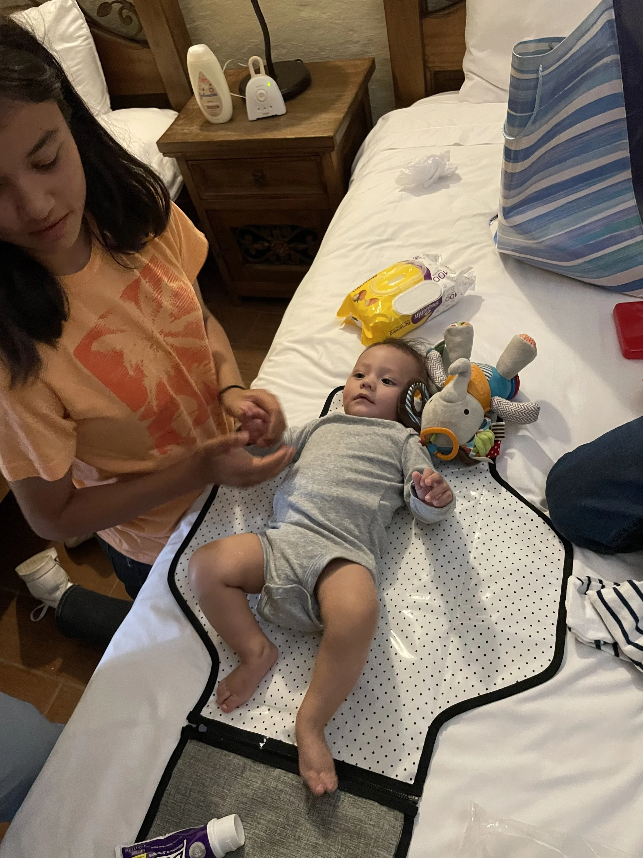 And starting a routine…the kids first diaper change! It was “an easy one” to start! More to come I am sure. A lot of big talking from Santi how he can handle diapers with no problem. For those who know my son knows that he has a really bad gag reflex and smells will give him the dry heaves. We’ll see how it goes.