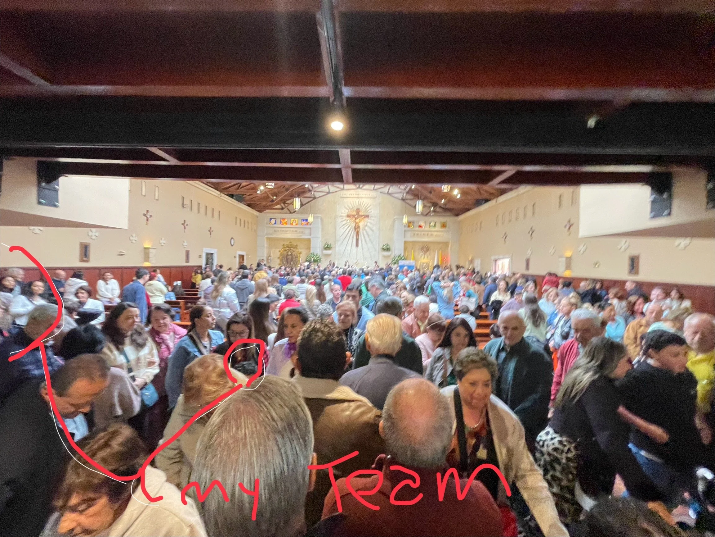 It was a nice church and it was absolutely packed! People were sitting on the steps up to the altar and standing room only. Peanut started to get a bit restless so we made our way to the back, but there wasn’t a back. I had to go out of the church where there were several dozen people standing outside listening to mass. It was actually very cool; standing room only!