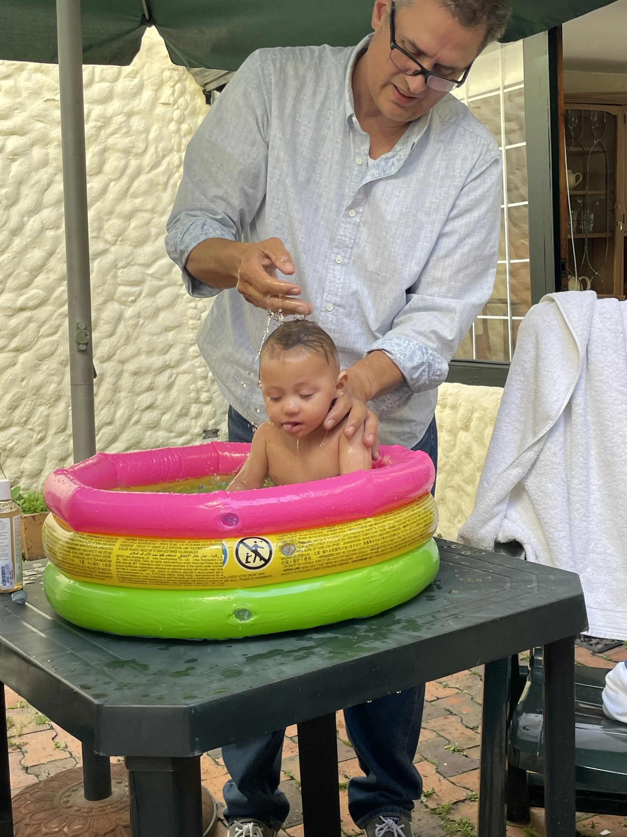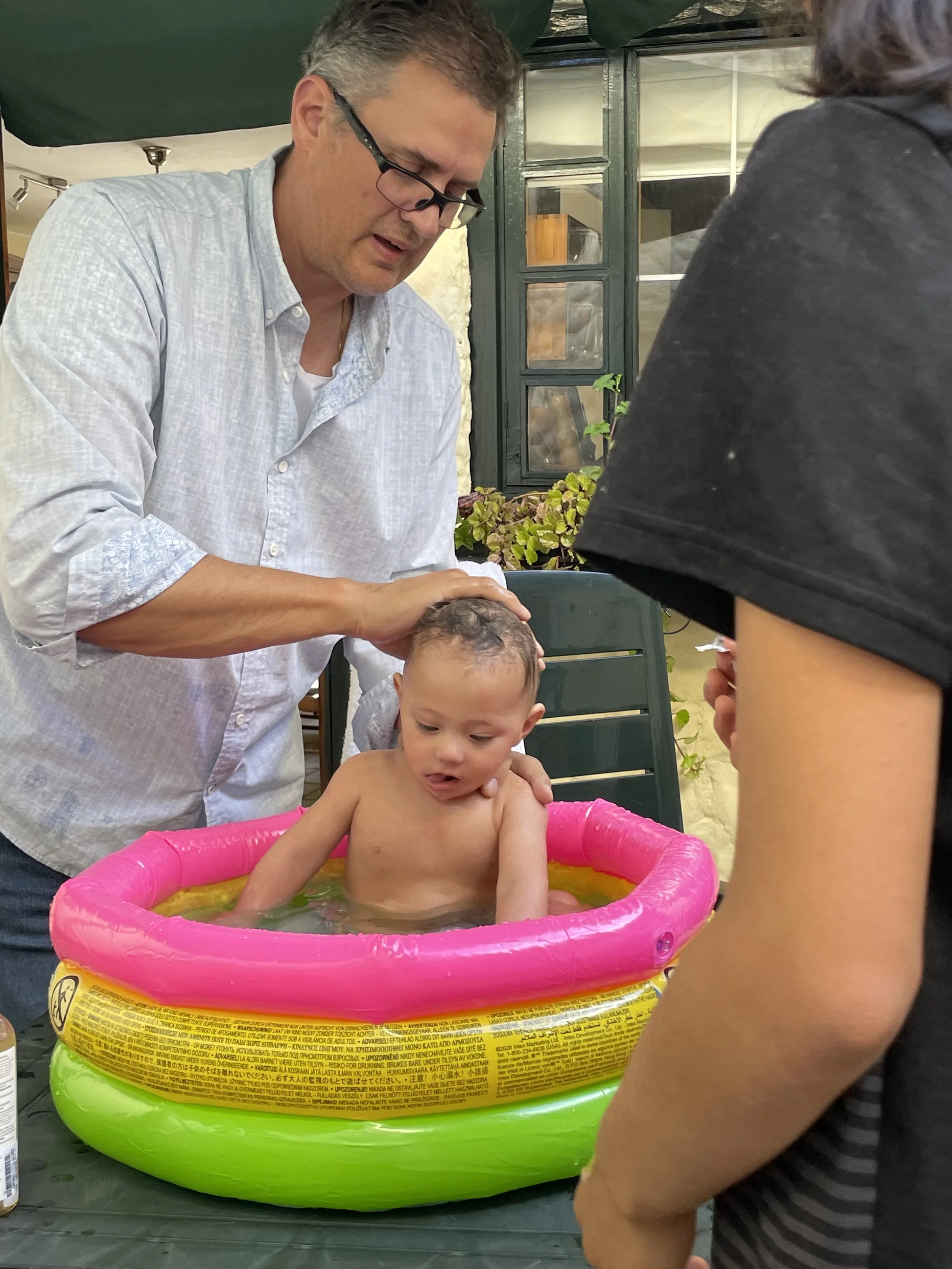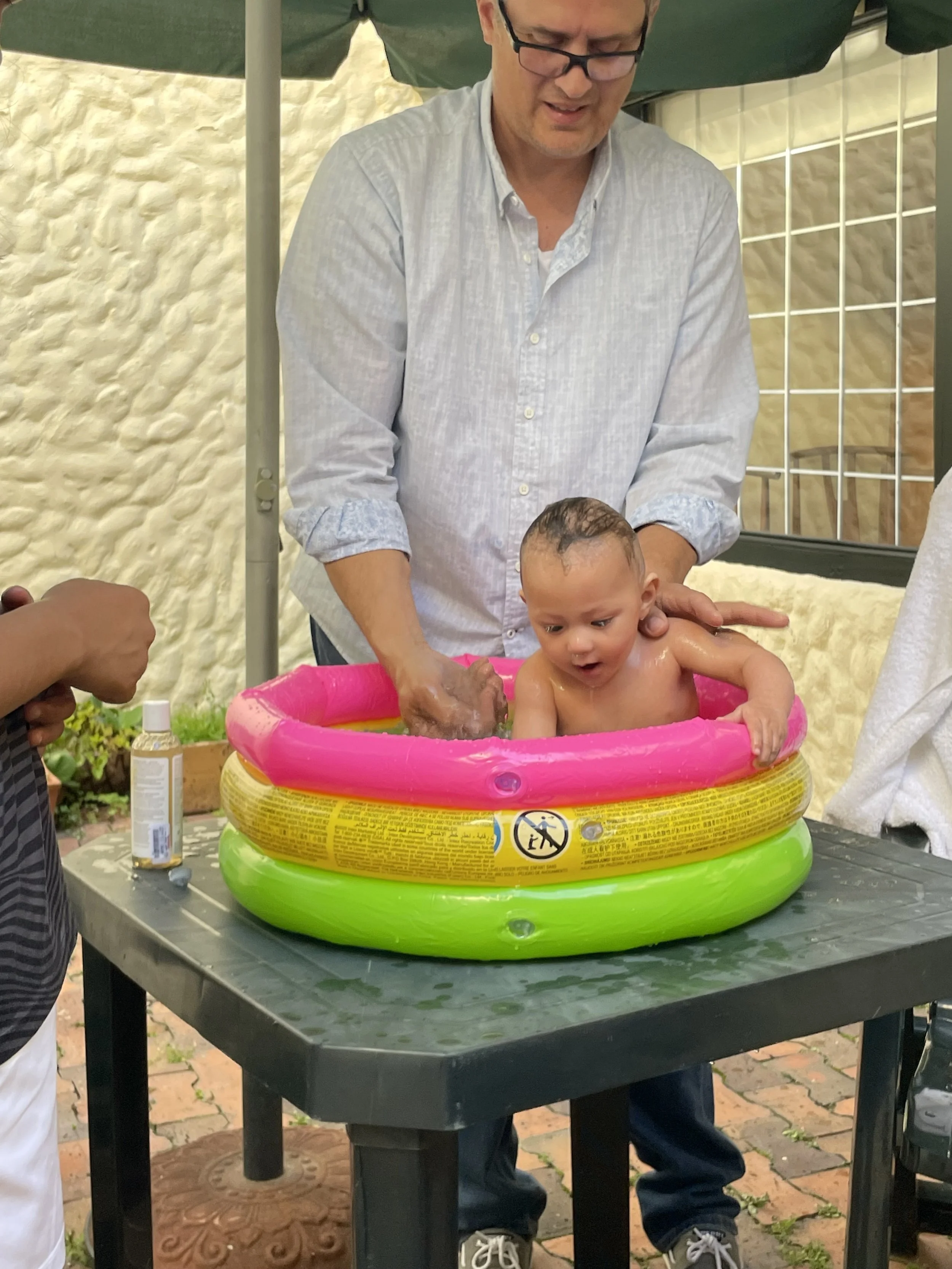 Unfortunately, the party was over sooner than he wanted. The water we arm but it is still low 60’s outside and has been raining all day so the is a bit of a chill.