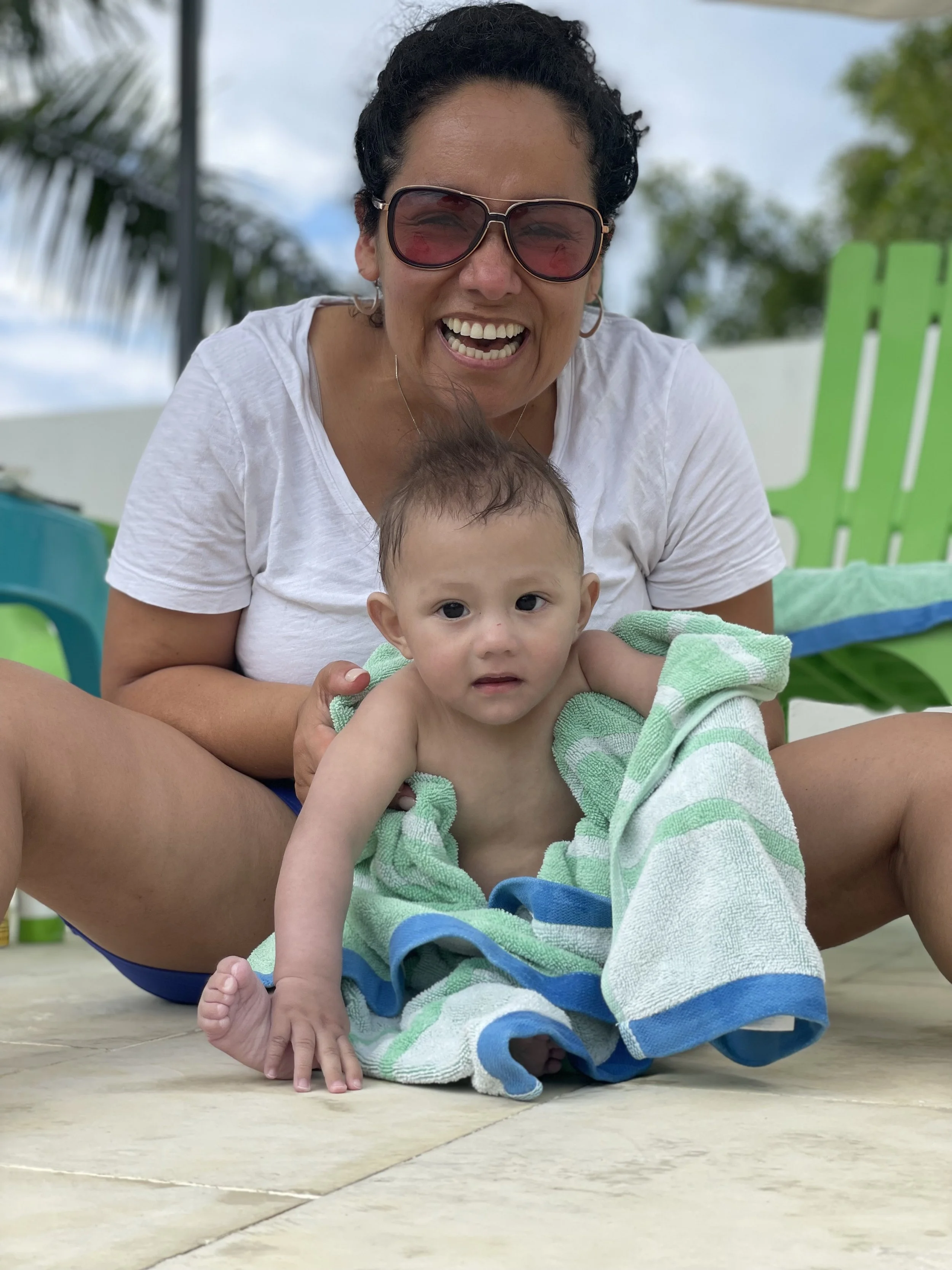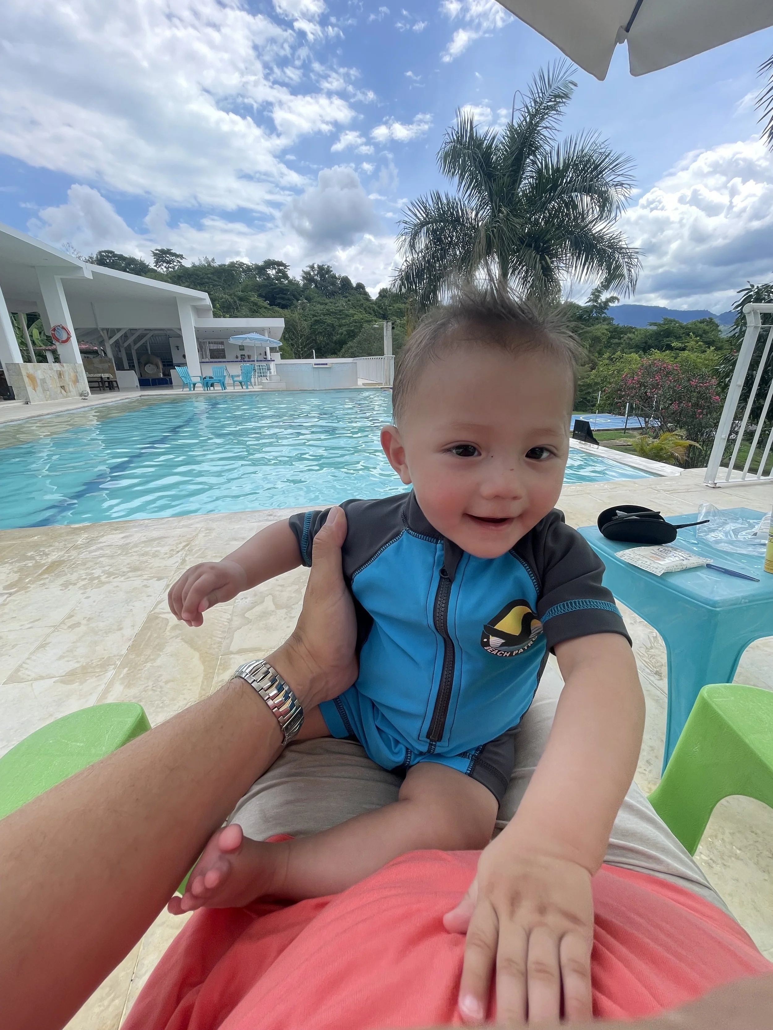 After that, we slid into the pool. Not aware 5hat Andre has ever been in a pool, or really even a bathtub. But let me tell you, he was all about it . Splashing & Todo desorden!