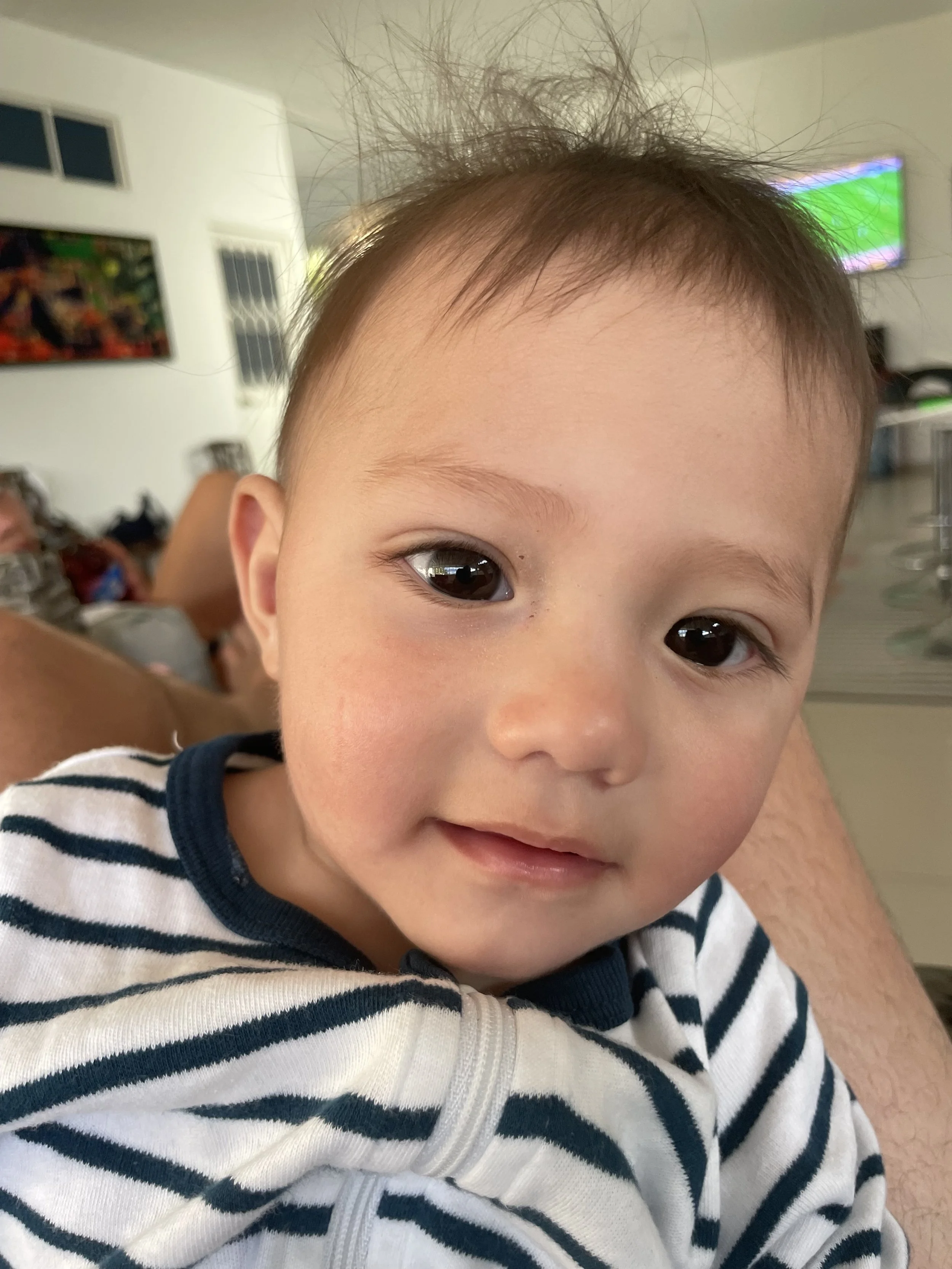 so the peanuts nap went late. It was like 5:30 and he was still out. We got him up and I guess things were fine. He wasn’t in the mood for anything. We ran a rotation of playing with him until he got sick of us. Colombia was playing Paraguay in the Copa de America tournament. So the tv was on and we were loving it. Of course he got freaked out for every Colombian goal because mami screams like a crazy woman and scared him. Even the close calls, offensive and defensive she still was crazy. I don’t blame Andre. She scares me too sometimes. Colombia won btw 2-1. But Andre never really recovered from that. He screamed throughout dinner. He didn’t want anything, food or anyone holding him. He got his final bottle and mercifully went to bed. His screeching in my ear physically hurt. It was a rough night for all involved. BUT, I am sure my family has had to deal with a crabby papi on occasions and they still tolerate me…I think. I think he is entitled to a rough night.