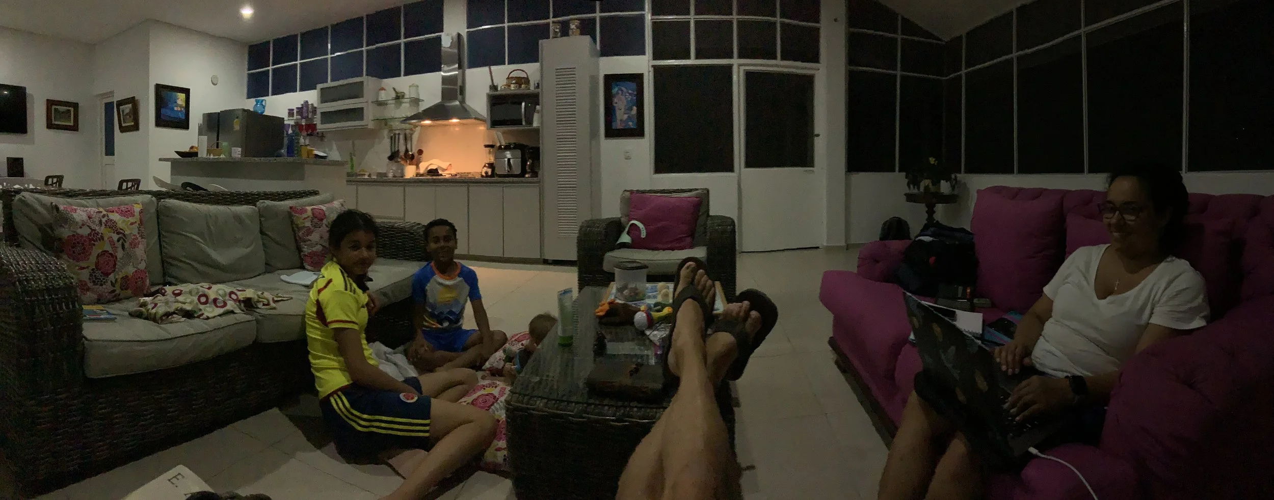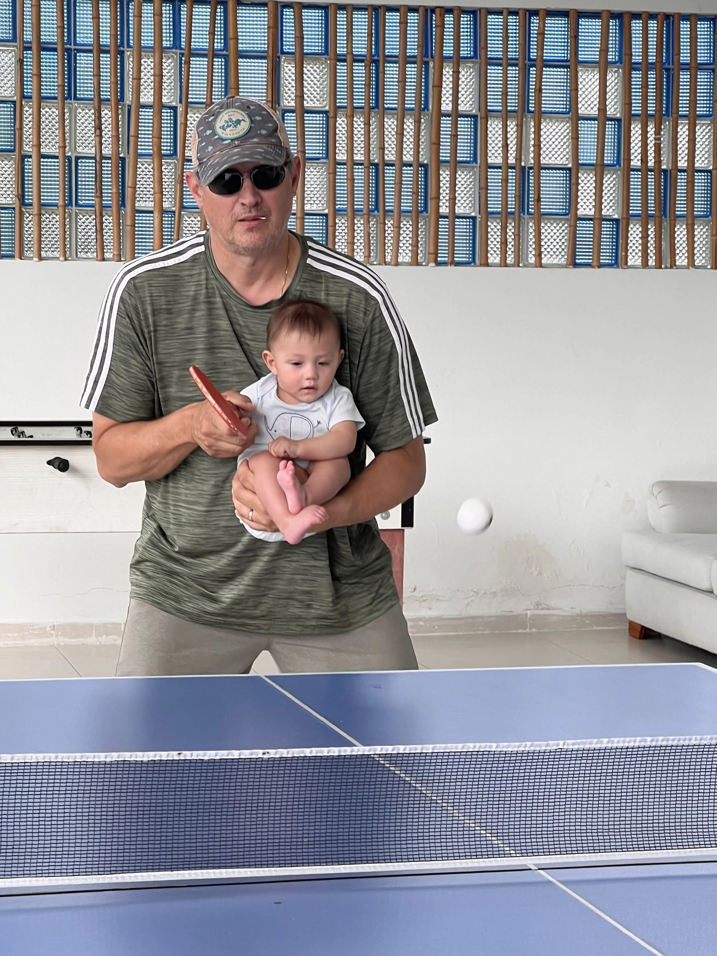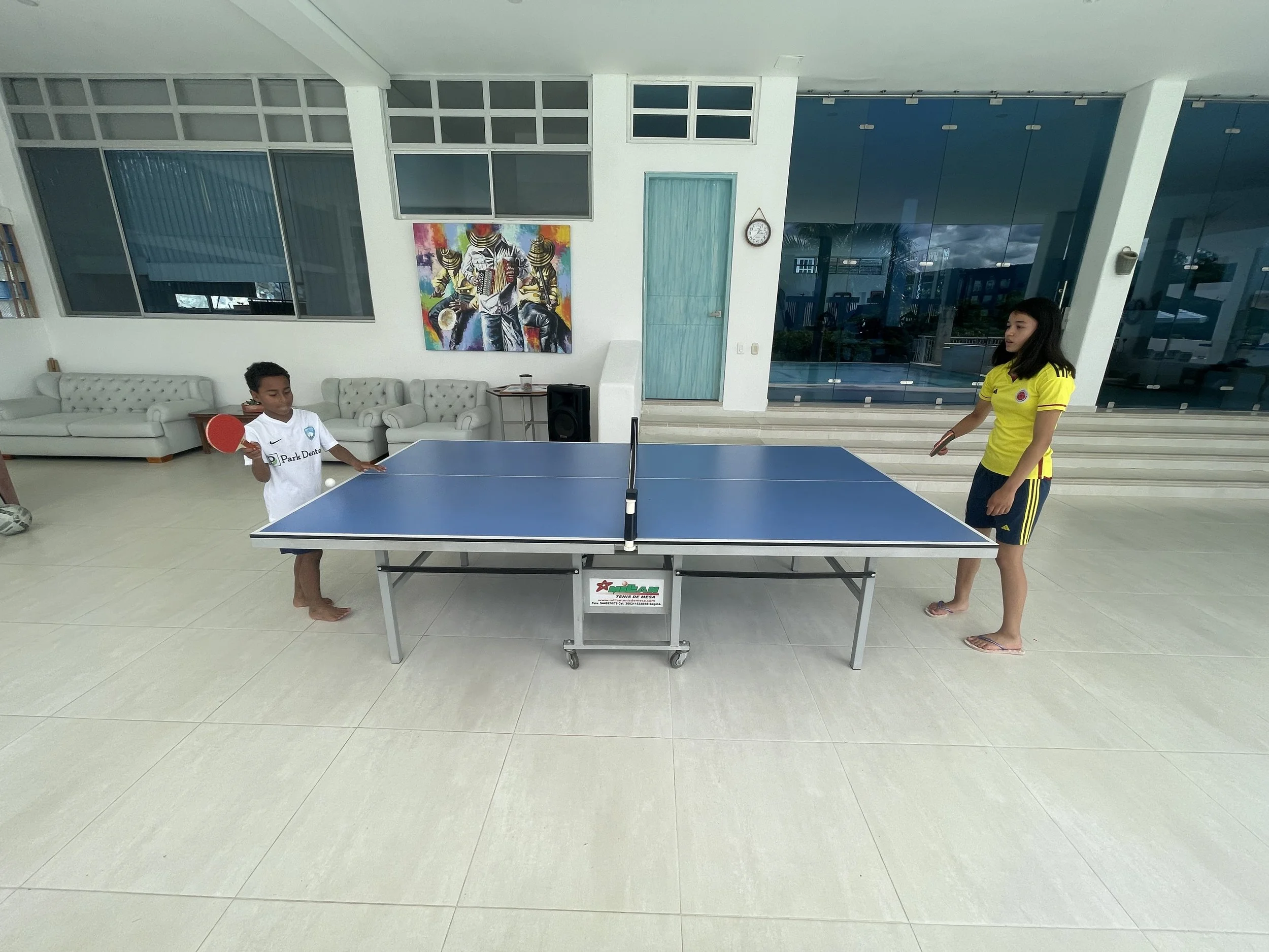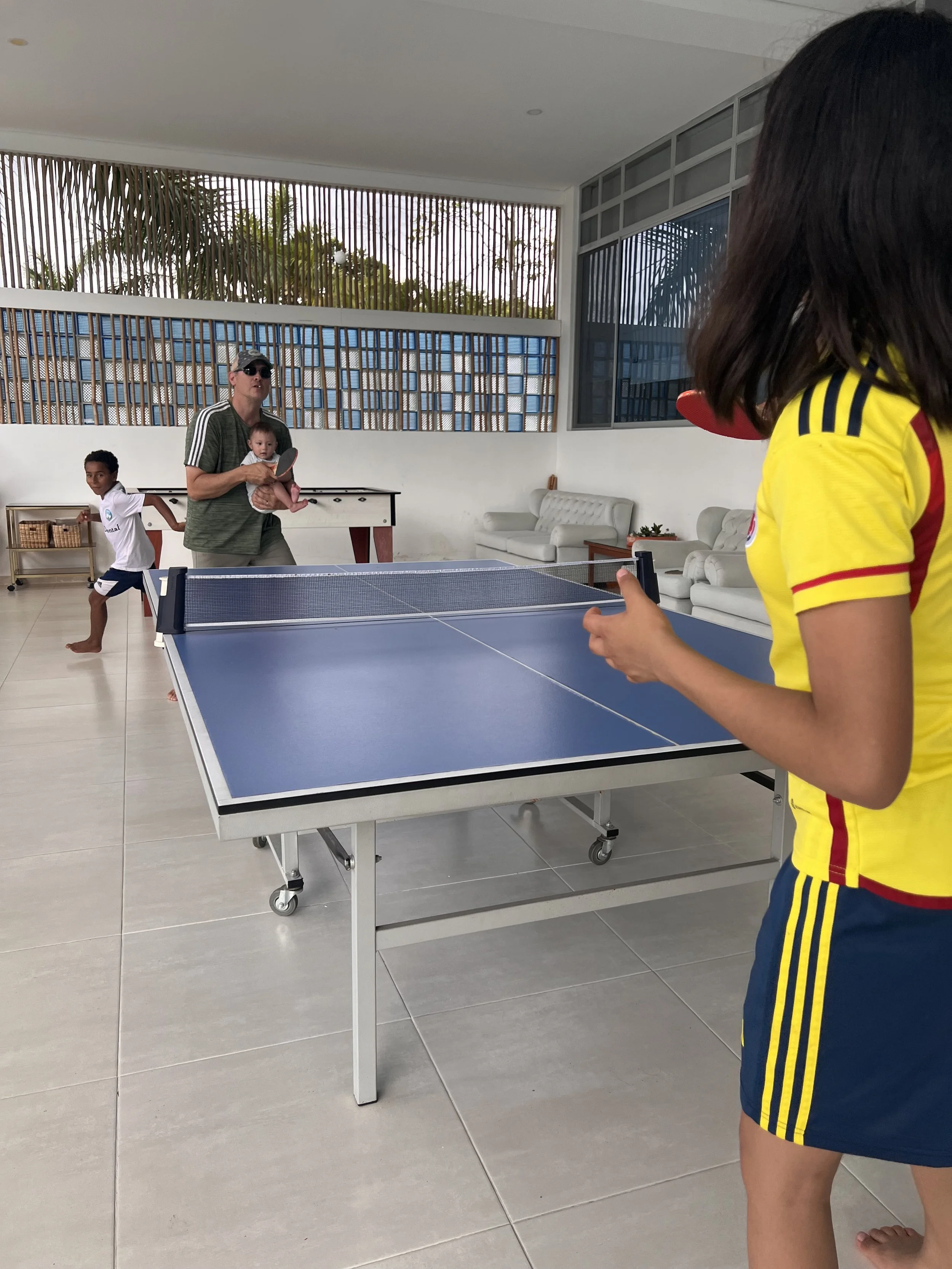Repeat. Much like yesterday. The kids ( our big ones) were all excited for challenging the adults at ping pong. So competitive! Breakfast first though and they went to “warm up” while the adults dealt with the smallest one. Peanut was a bit fussy again. I think he was up 3 times last night. He has no tolerance for a wet diaper so that’s always an easy one. He was also congested so we needed to give him some nose drops to help clear him up. There were also som psych birds outside raising a racket across the compound. I told Claudia that Colombian owls are stupid because they don’t even slightly resemble a “HOOO!”. I don’t know what kind of teradactyl birds those were but they hang out in groups and they don’t sound very bright. I’ll see if I can’t get a recording of these geniuses communicating for future posts.
