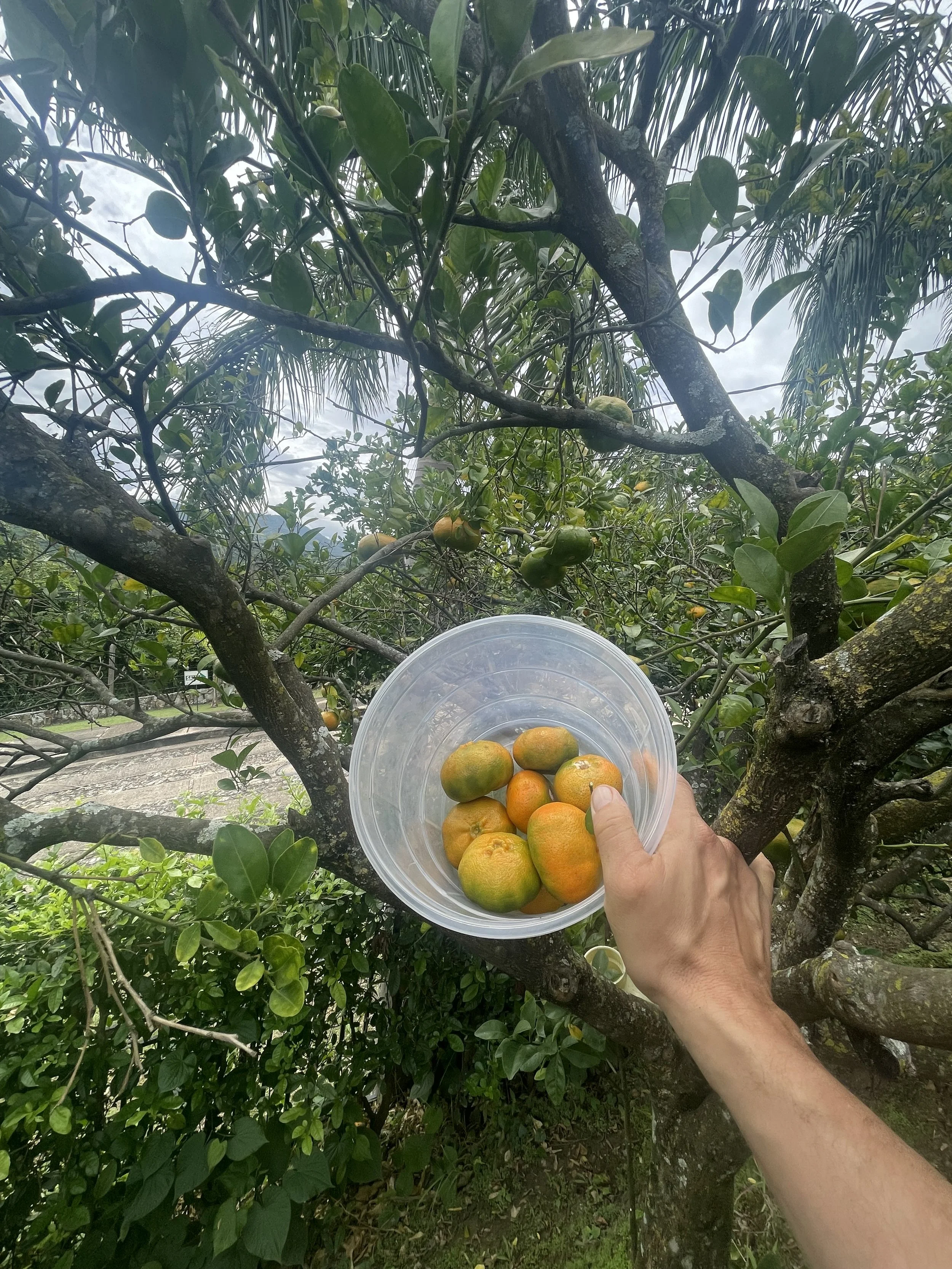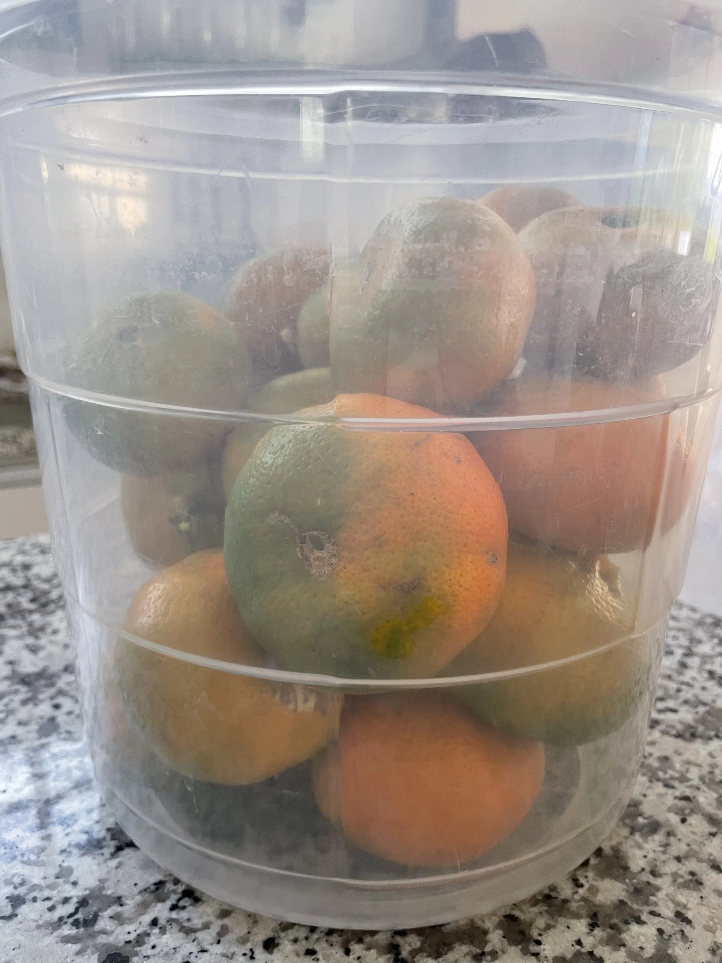 Kind of a lazy day. Slow moving breakfast. I went out to the yard to get some mandarins to squeeze for juice. The picture below isn’t ver reminiscent of the oranges harvested…these are a bit too green. Man that juice is so good though!